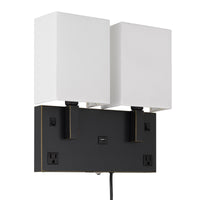 Olive Modern Metal Wall Lamp, 2 Shades, USB, 2 Power Outlets, White, Black