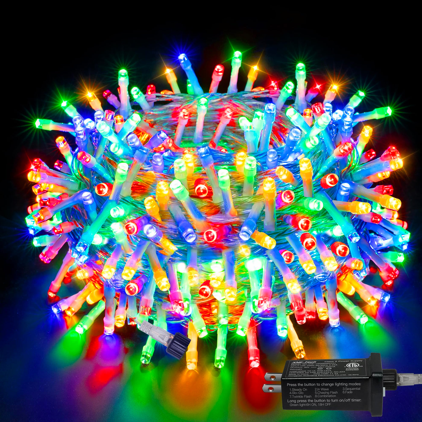 Ollny Christmas Lights Outdoor 200Led 60Ft, Multicolor Connectable Plug In Fairy Light Indoor, 8 Modes Waterproof Timer Plug In Led String Lights For House Outside Bedroom Patio Balcony