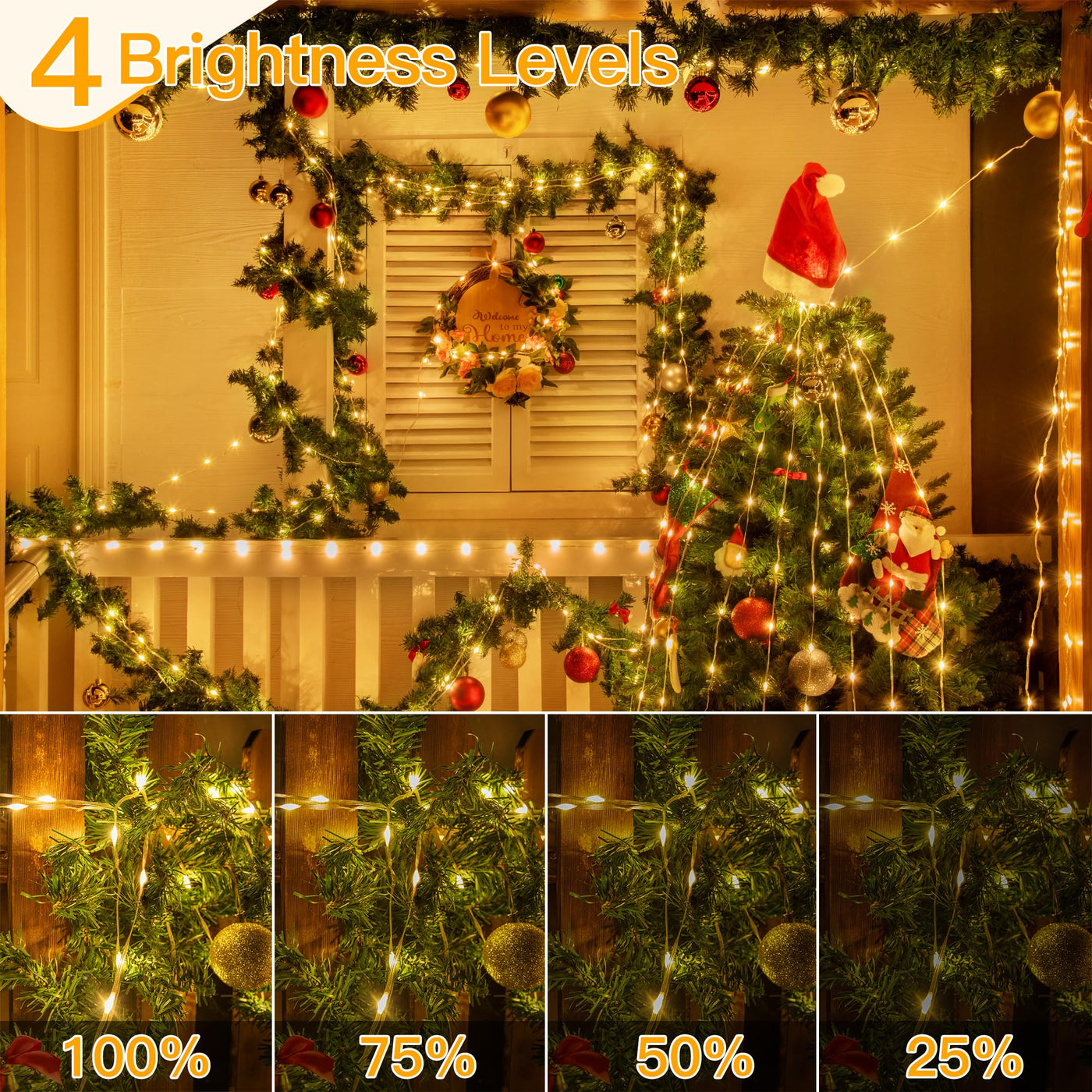 Ollny Christmas Lights Warm White, 600Led 197Ft Christmas Tree Lights Ip67 Waterproof, Plug In Fairy Lights With Remote 8 Modes