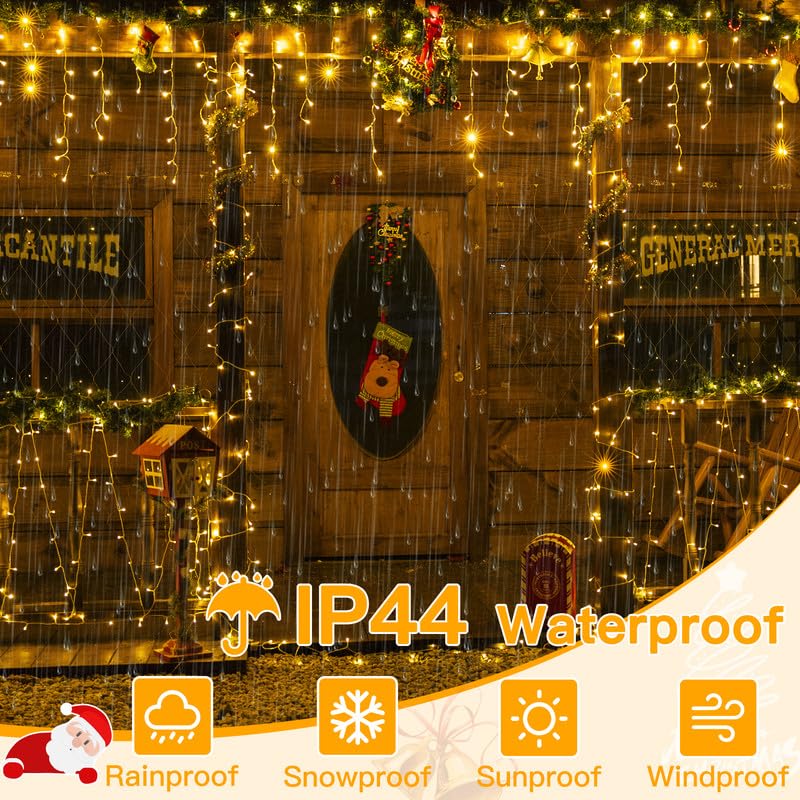Q: Are these lights safe for outdoor use in bad weather?A: Yes, the Ollny Icicle Lights have an IP44 waterproof rating, making them suitable for outdoor use even in rainy or snowy conditions.