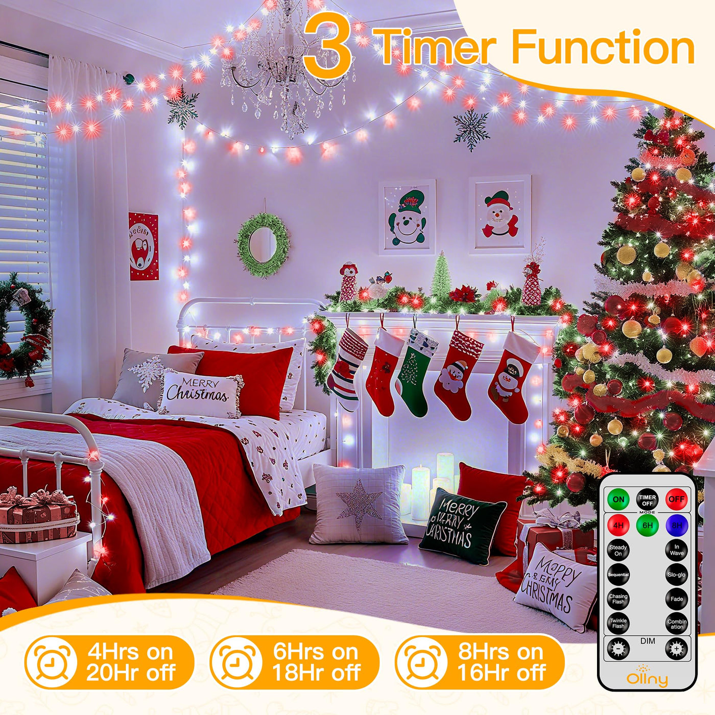 Ollny Red And White Christmas Lights Waterproof 400Led 131Ft String Lights With Remote 3 Timer Plug In 8 Modes Fairy Light For Xmas Tree Indoor Bedroom House Party Wedding Decorations