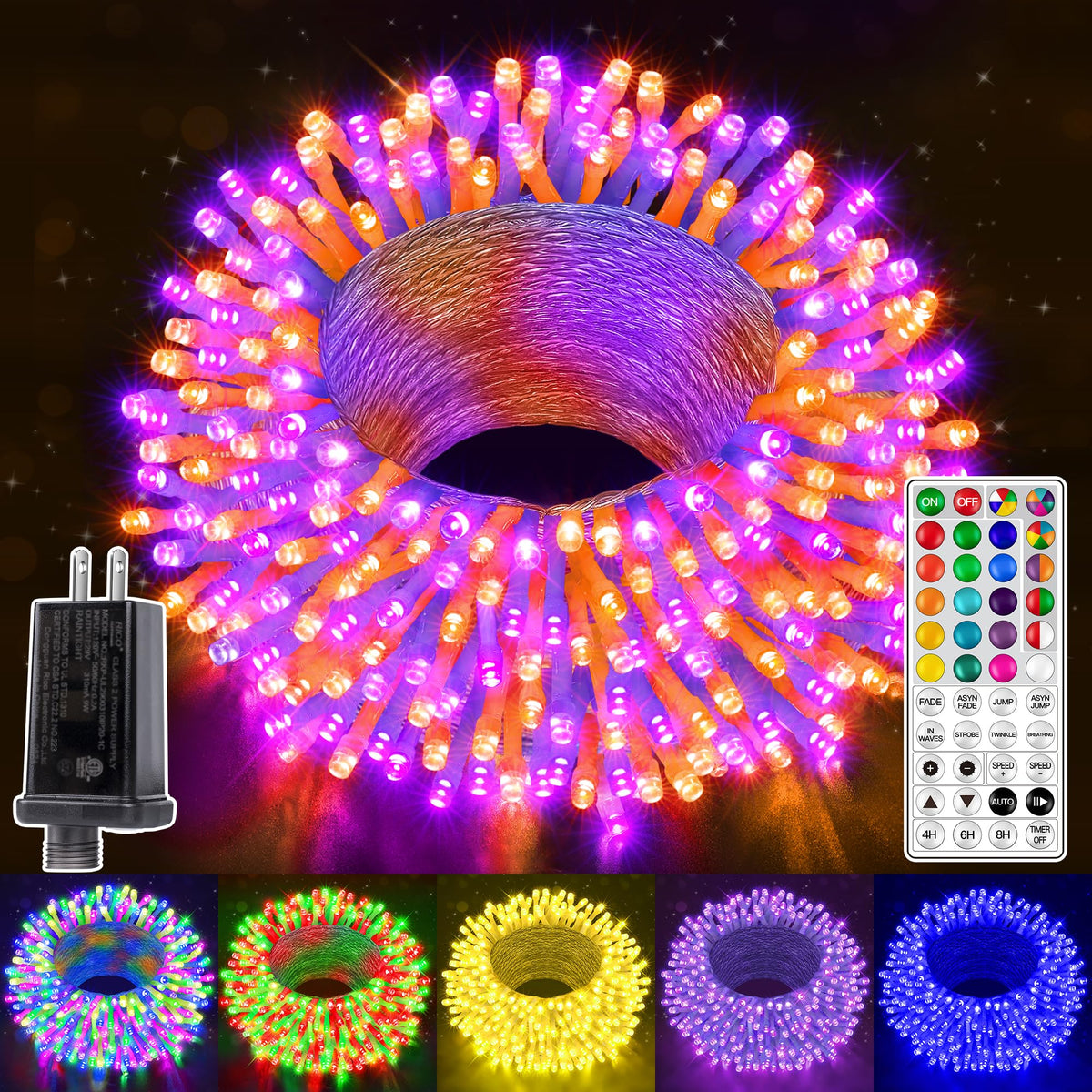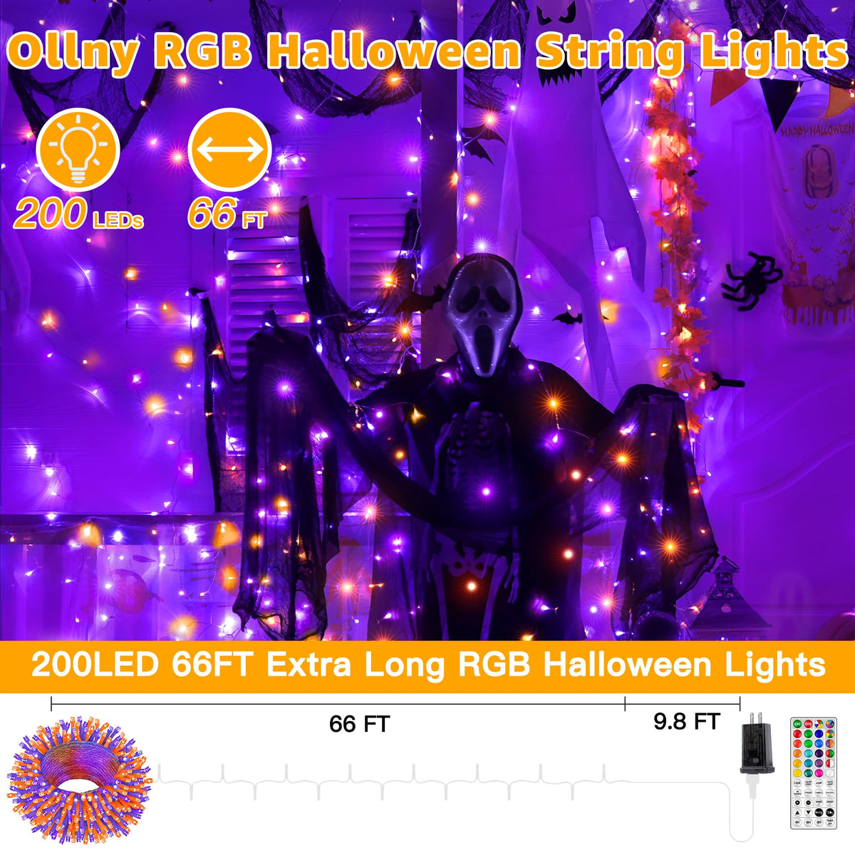 66 feet of vibrant RGB clear wire light string with 200 bulbs for a stunning display.