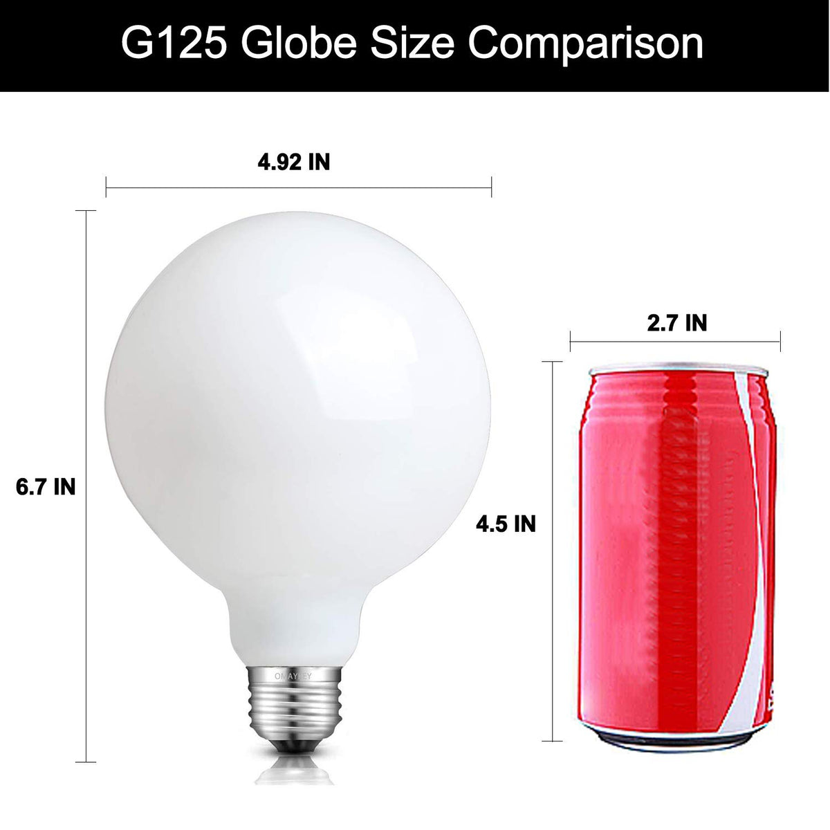Q: What are the dimensions of the OMAYKEY G125 LED Globe Bulb?A: The OMAYKEY G125 LED Globe Bulb has a diameter of 4.92 inches and a height of 6.7 inches, making it suitable for various fixtures and applications.