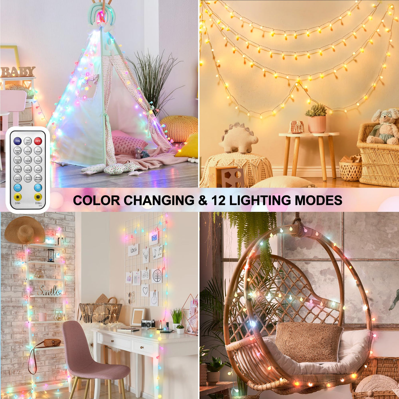 Q: Can I control the lighting modes of these string lights remotely?A: Yes, the OMIKA string lights come with a remote control that allows you to turn the lights on/off and select from 12 dynamic lighting modes, enhancing your decorative experience.
