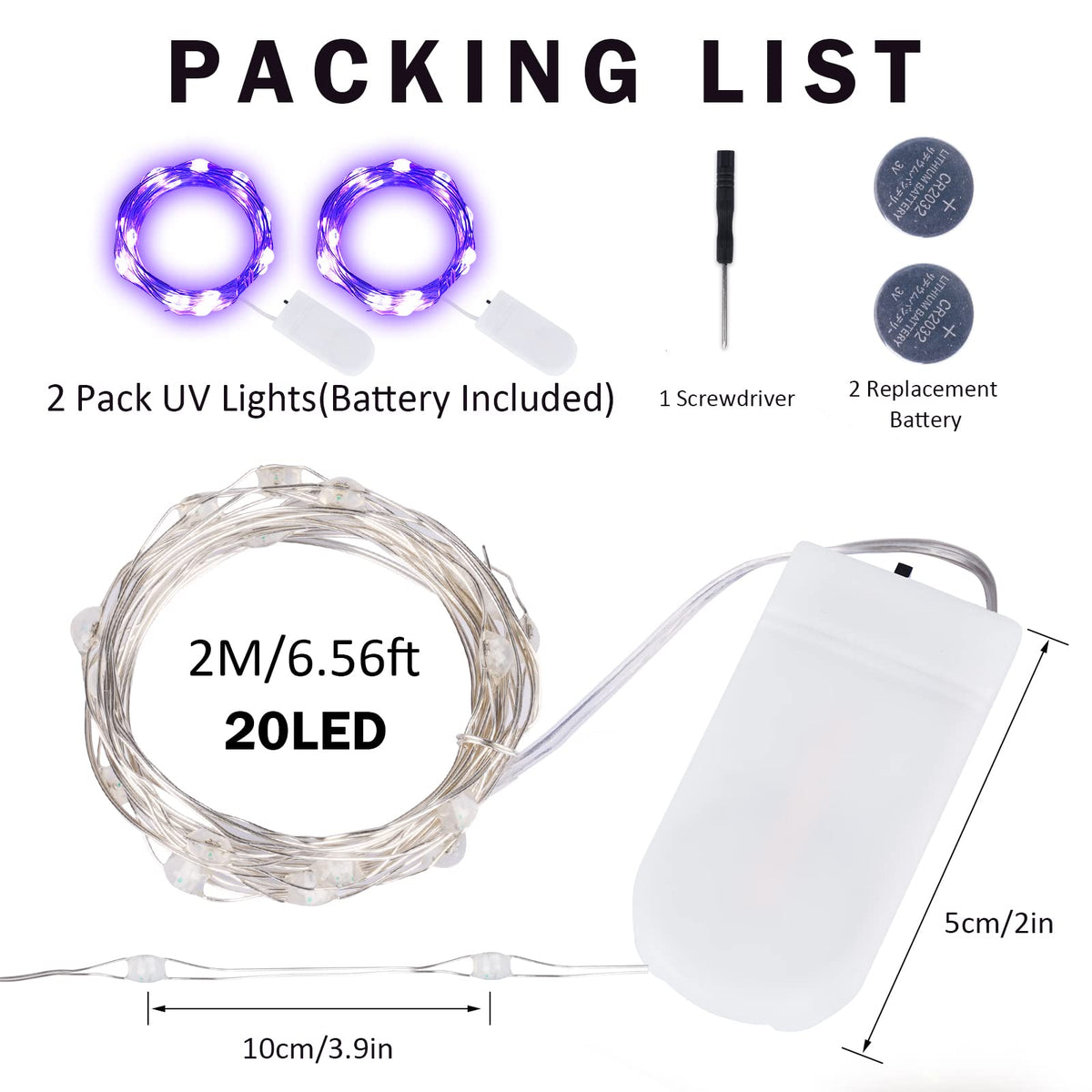 2 Pack Uv String Lights: Includes Two 2M/6.56Ft Copper Wire String Lights With 20 Uv Leds Each For Ample Decoration Options.