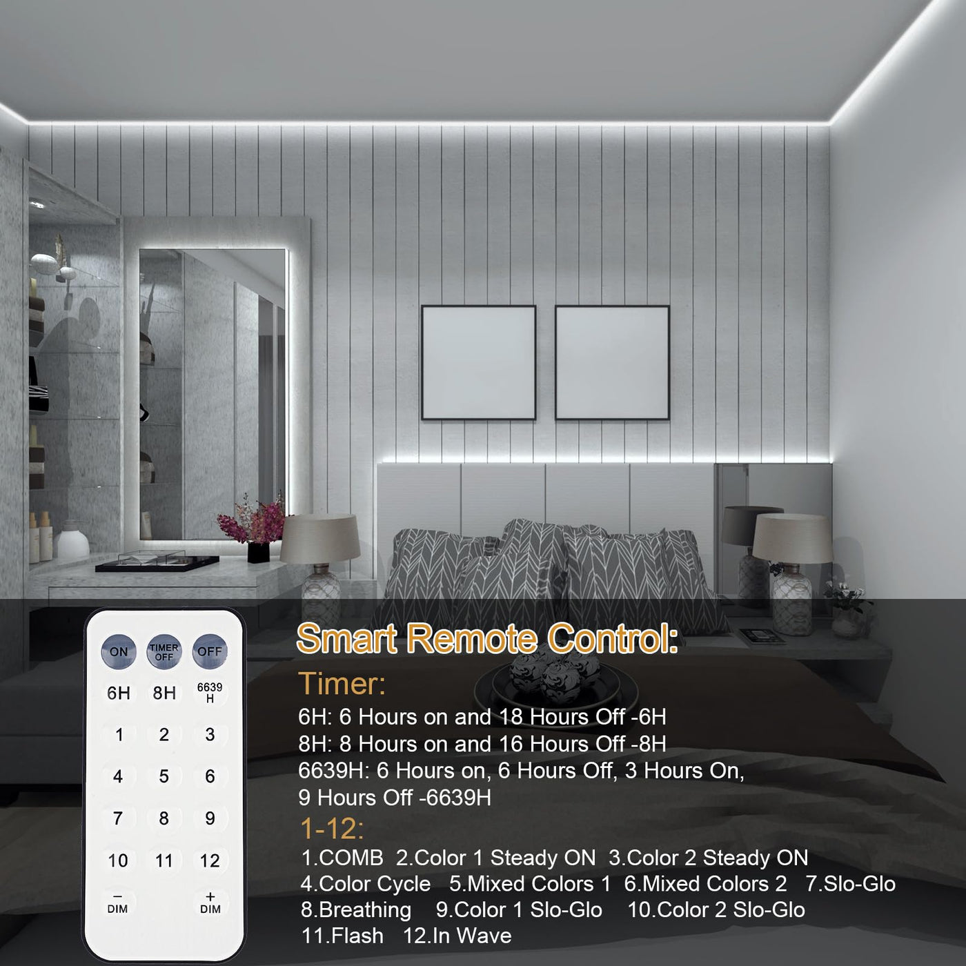 Multifunctional Remote Control: Includes a remote with 7 lighting modes: Combination, Color 1 Steady On, Color 2 Steady On, Color Cycle, Mixed Colors 1, Mixed Colors 2, and Slo-Glo.