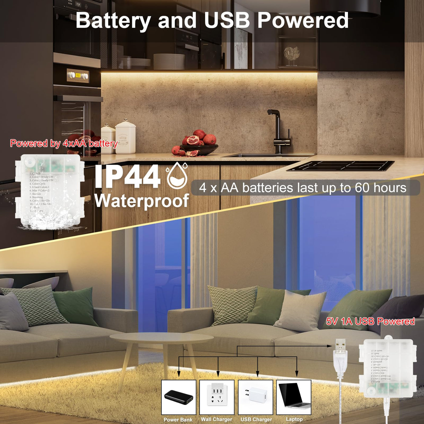 Battery Operated and Waterproof: Can be powered by 5V 1A USB or 4 AA batteries (not included); suitable for indoor and outdoor use.