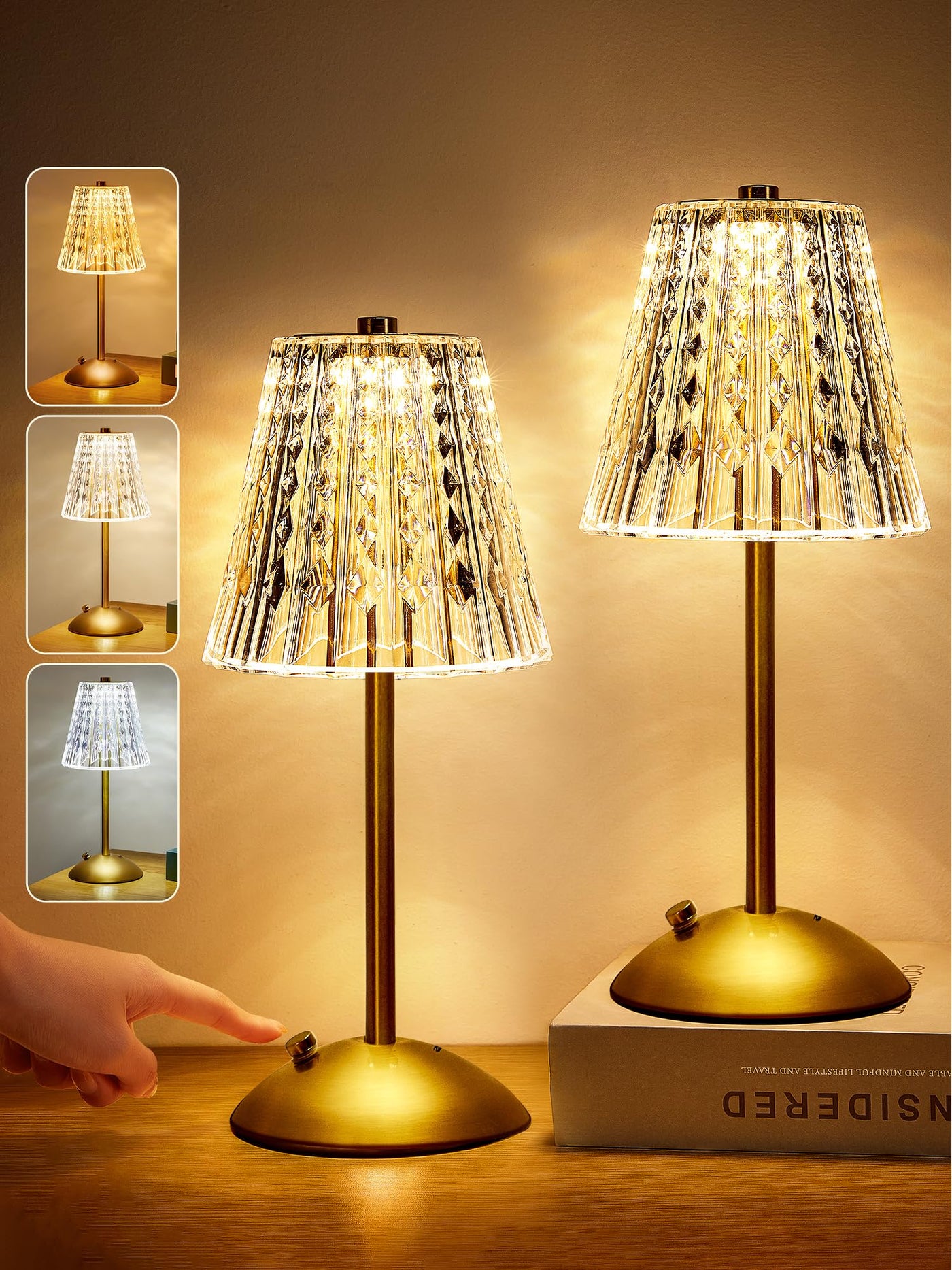 One Fire Nightstand Lamps Set Of 2, Dimmable Crystal Table Lamp 3 Colors Gold Lamp,Touch Lamp Bedroom Lamps, Rechargeable Small