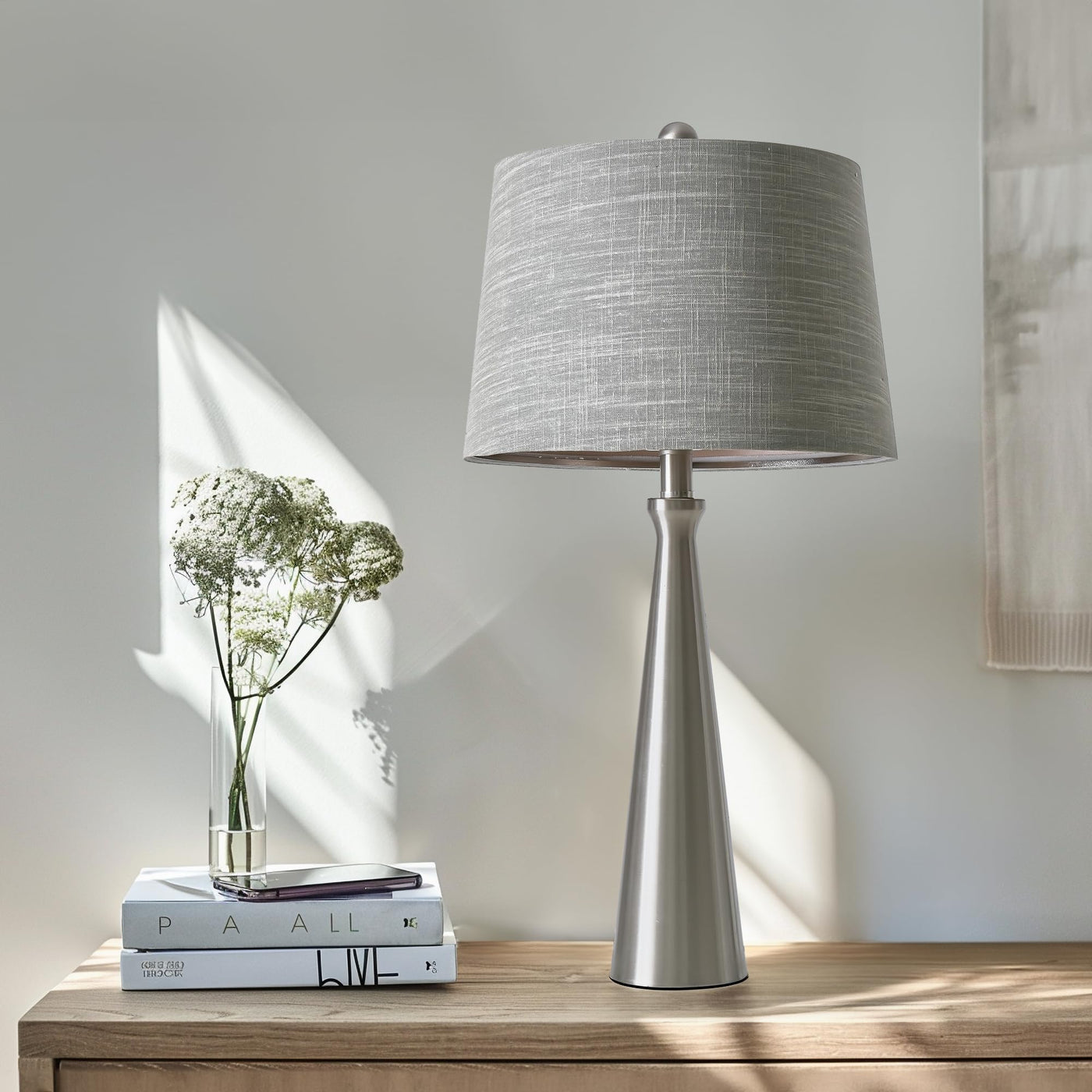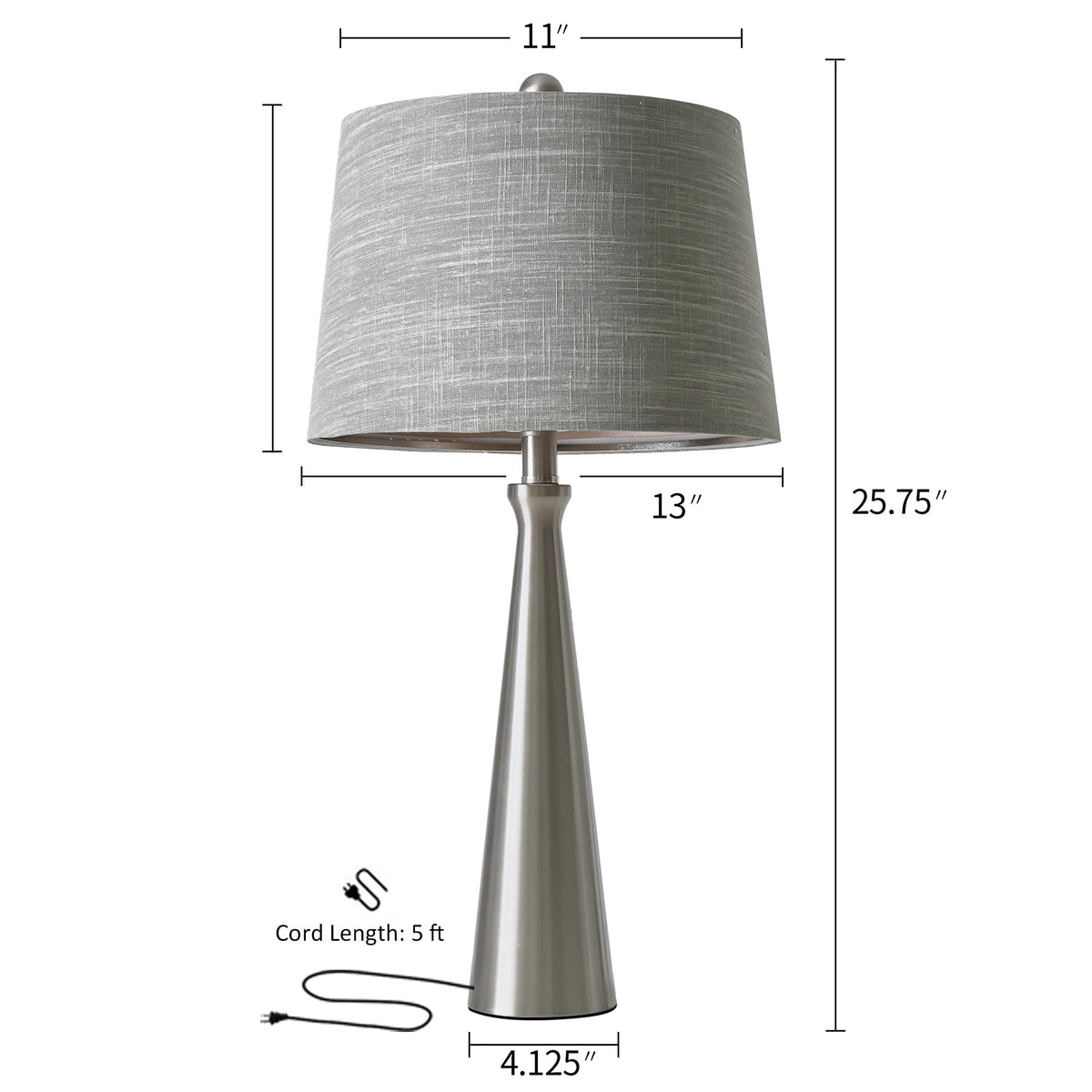 Oneach 25.75'' Table Lamps For Living Room Bedroom, Bedside Lamp 3-Way Dimmable Touch Control, Modern Silver Nightstand Light Fa