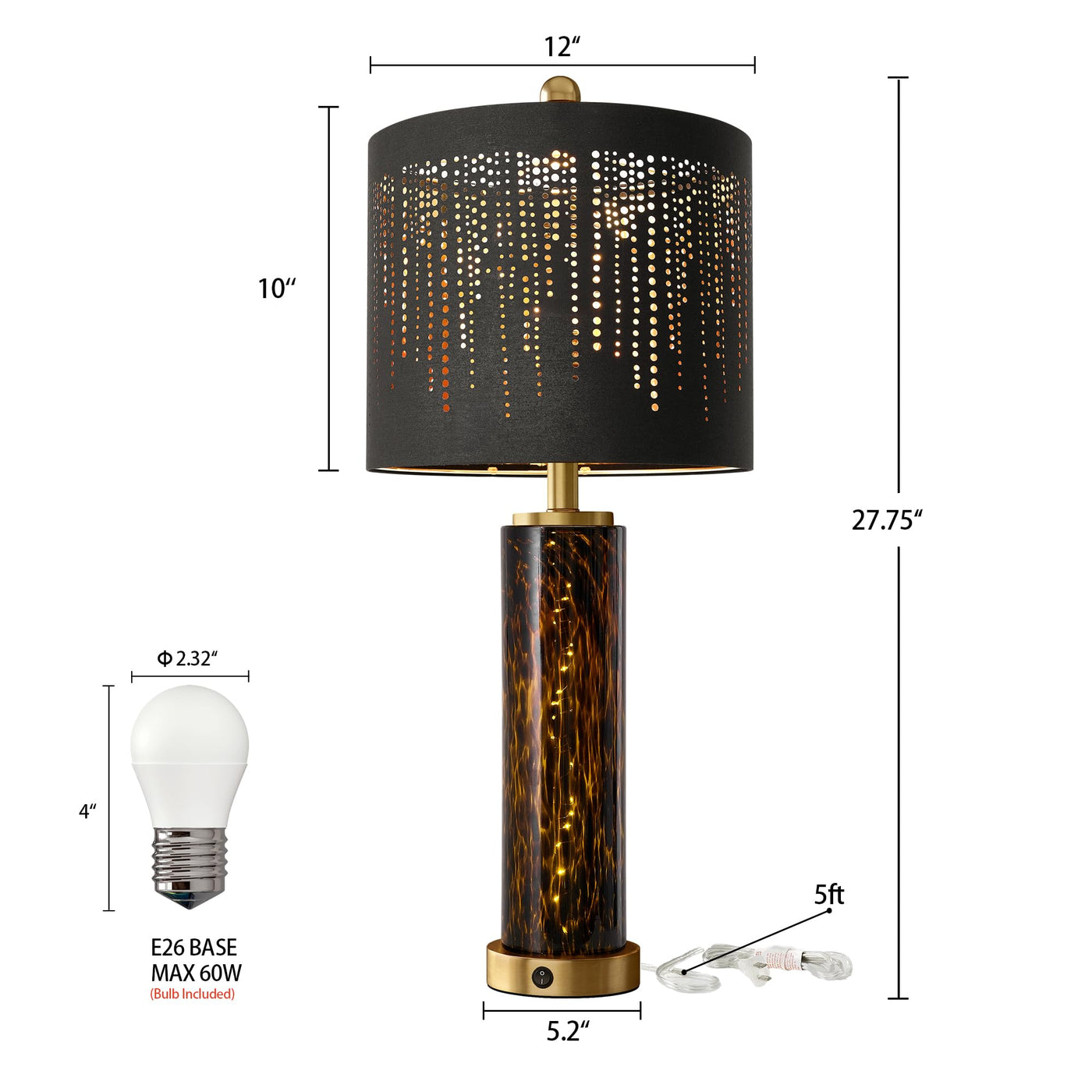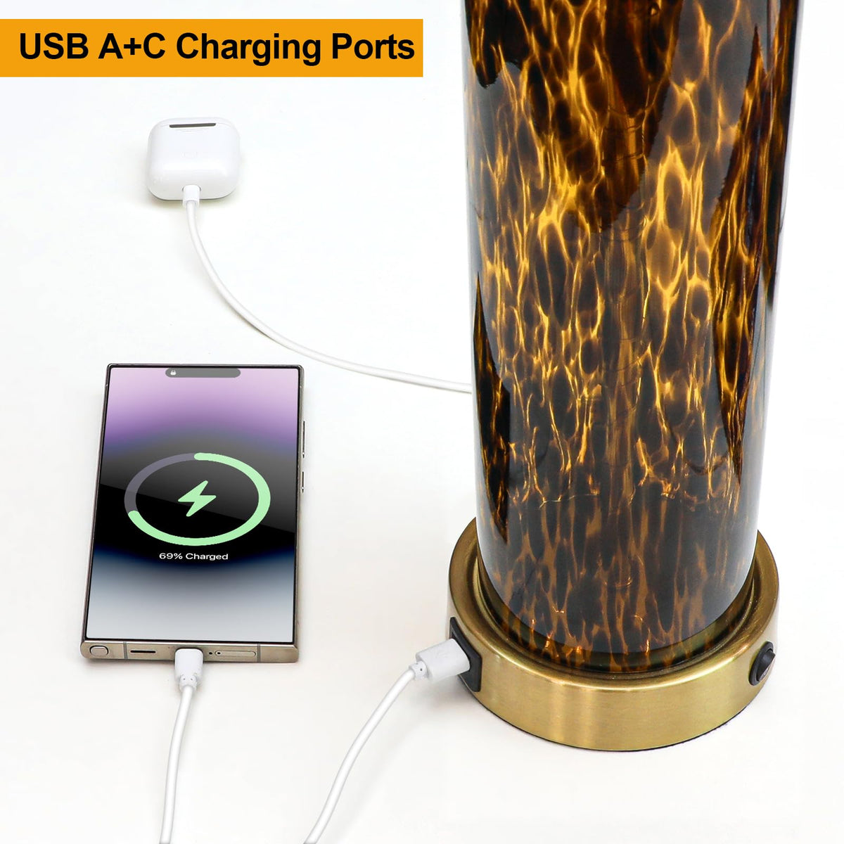 Oneach 27.75'' Modern Table Lamps Set Of 2, Gold Bedside Lamp With Leopard Glass Nightlight, Usb A+C, Black Crystal Shade, Uniqu