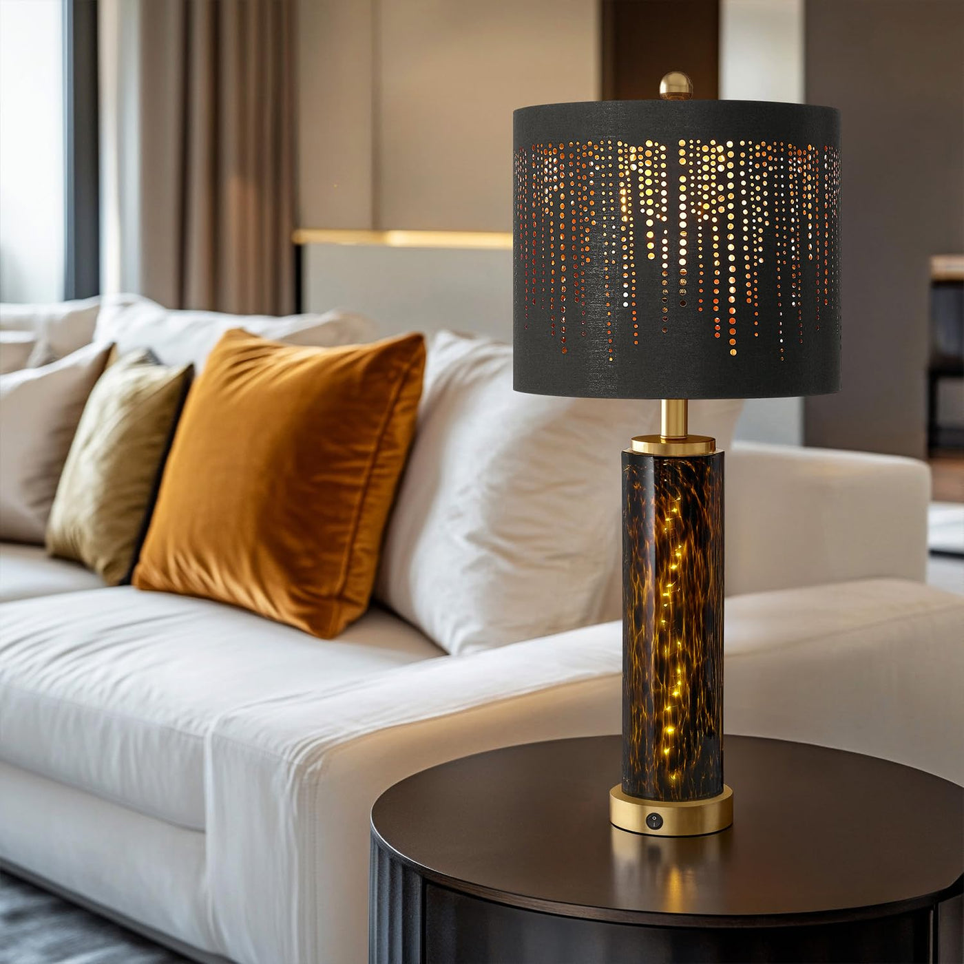 Oneach 27.75'' Modern Table Lamps Set Of 2, Gold Bedside Lamp With Leopard Glass Nightlight, Usb A+C, Black Crystal Shade, Unique Desk Lamps For Living Room, Bedroom, Nightstand, End Table (2 Bulbs Included)