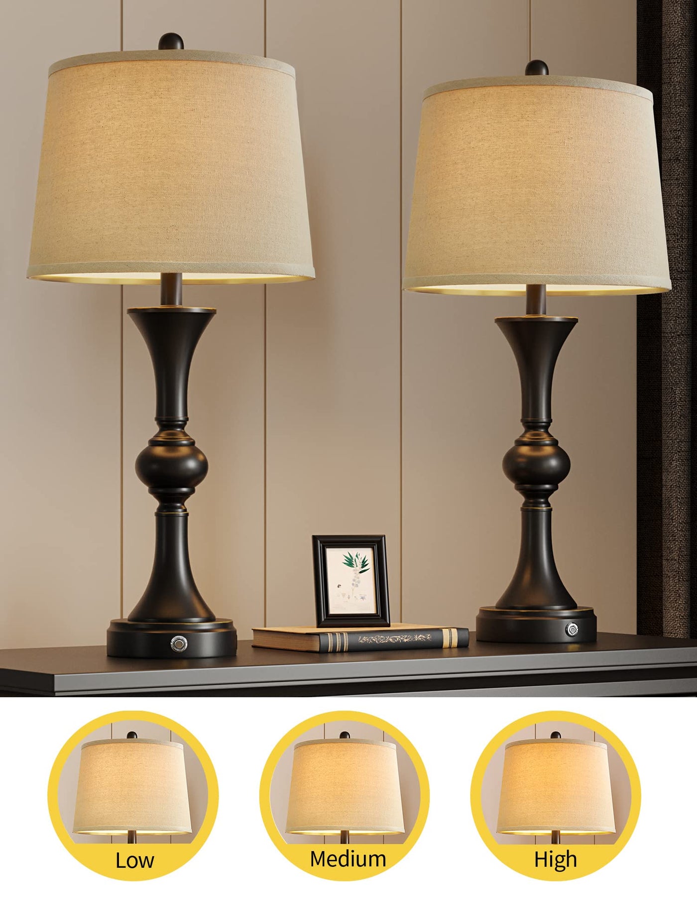 Oneach 28'' Table Lamps For Living Room Set Of 2, Bedside Lamps With 3 Way Dimmable Touch Lamps For Nightstand Bedroom Farmhouse