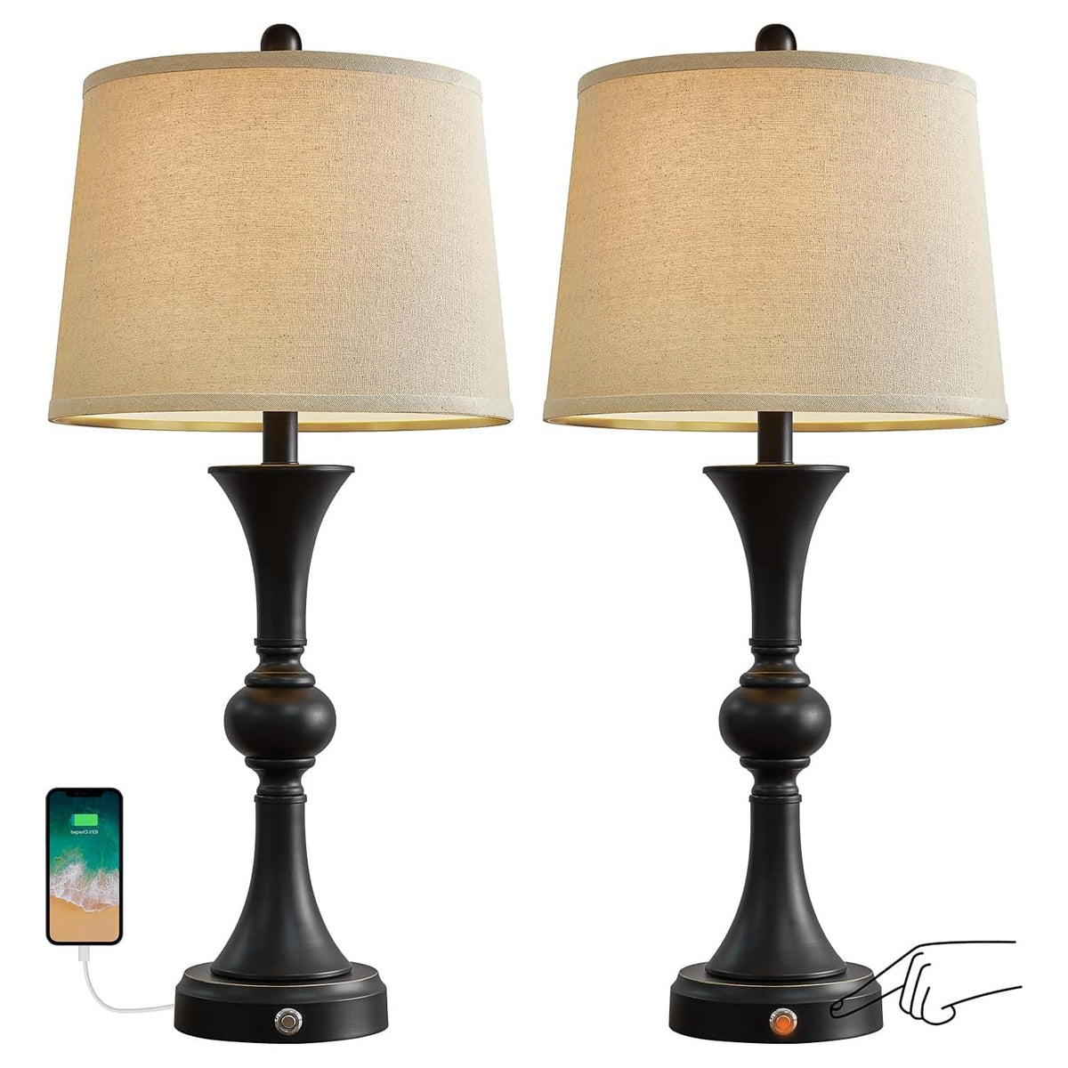Oneach Table Lamps For Living Room Bedroom Set Of 2 Bedside 3 Way Dimmable Touch Control 28'' Usb Table Lamp Industrial Modern Nightstand Light Black