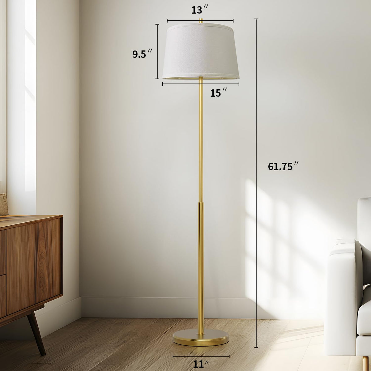 Oneach 61'' Floor Lamp For Living Room, Gold Modern Standing Lamp With White Linen Shade, Brass Tall Pole Light With Rotary Swit