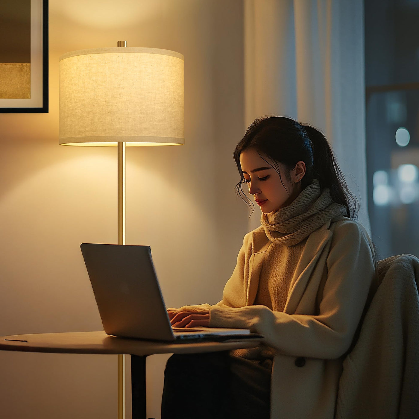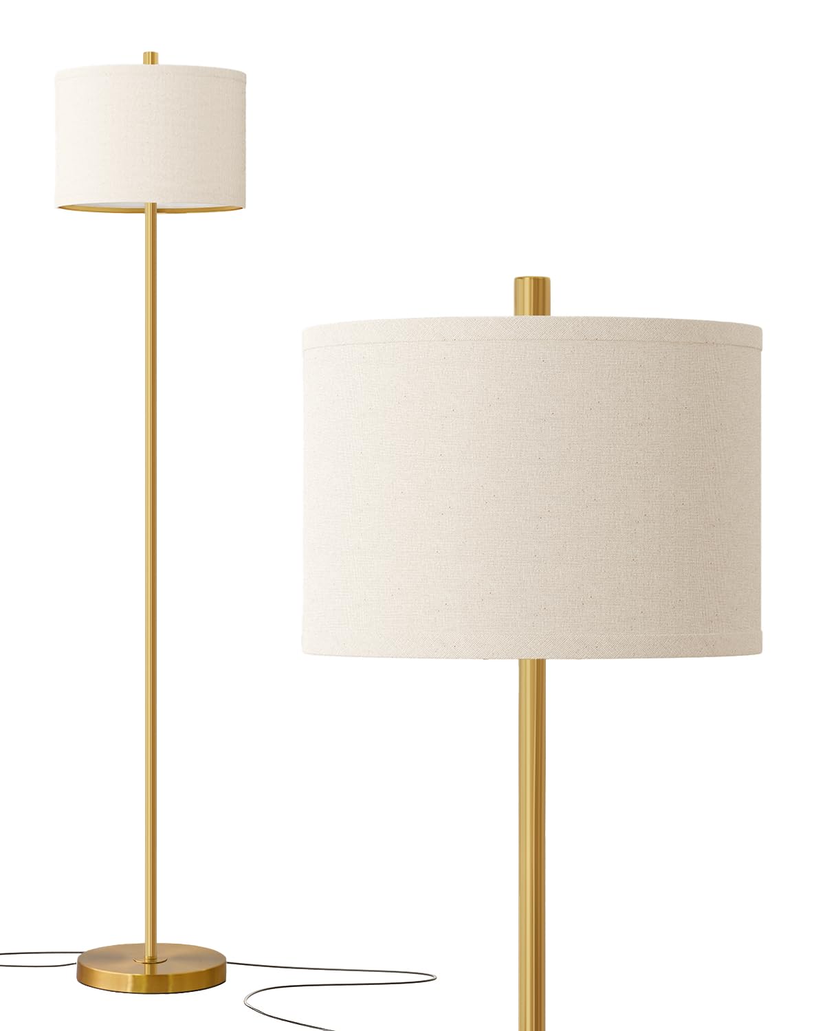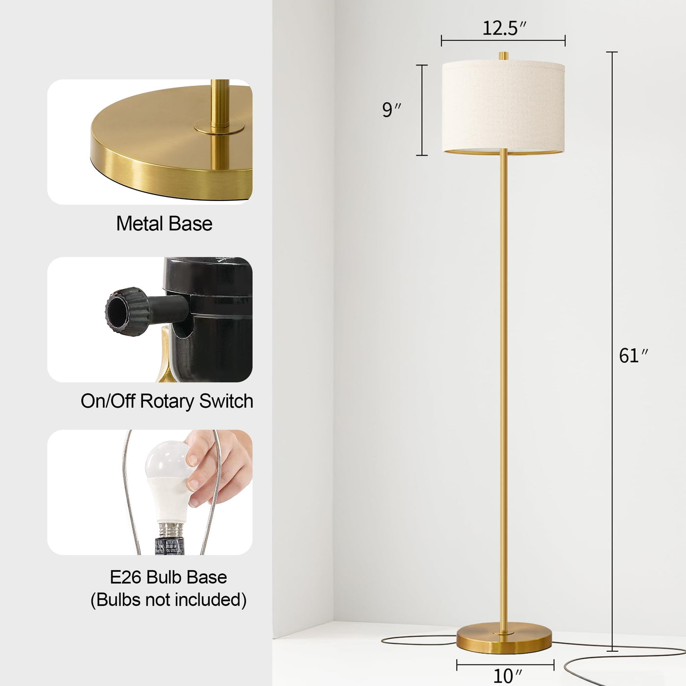 Oneach 61Modern Floor Lamp For Living Room, Gold Standing Lamp With Natural Linen Lampshade, Rustic Industrial Corner Floor Lamp