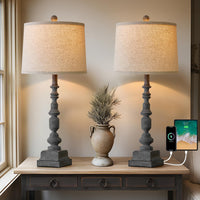 Illuminate your space with the charming Oneach Farmhouse Table Lamp Set. This exquisite set of two lamps combines rustic elegance and modern functionality, making it the perfect addition to any room in your home. With a beautiful antique grey finish and built-in USB A+C ports, these lamps are designed to enhance both style and convenience.