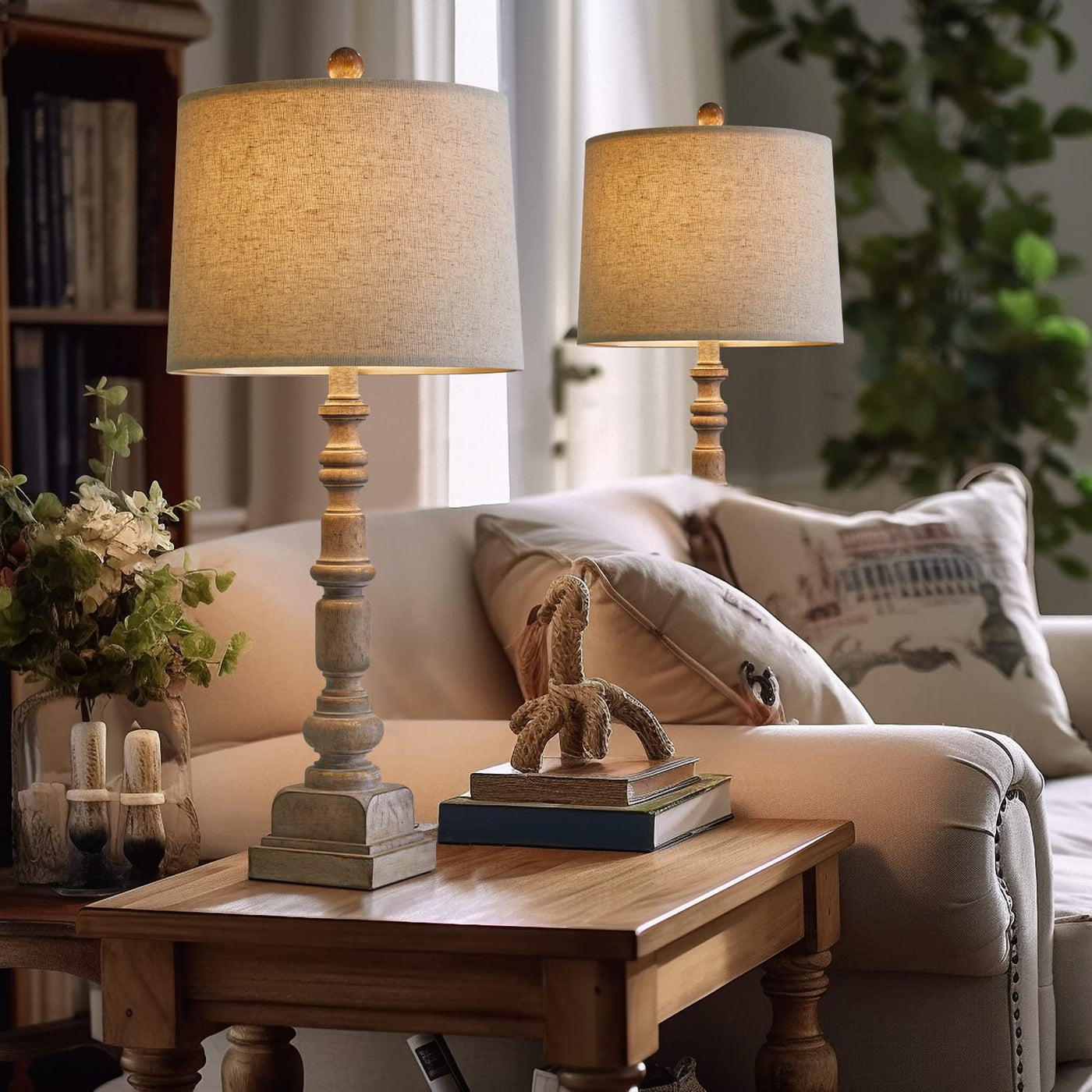 Oneach Vintage Farmhouse Usb Table Lamps Set Of 2, Resin Nightstand Lamp With Dual Usb Port