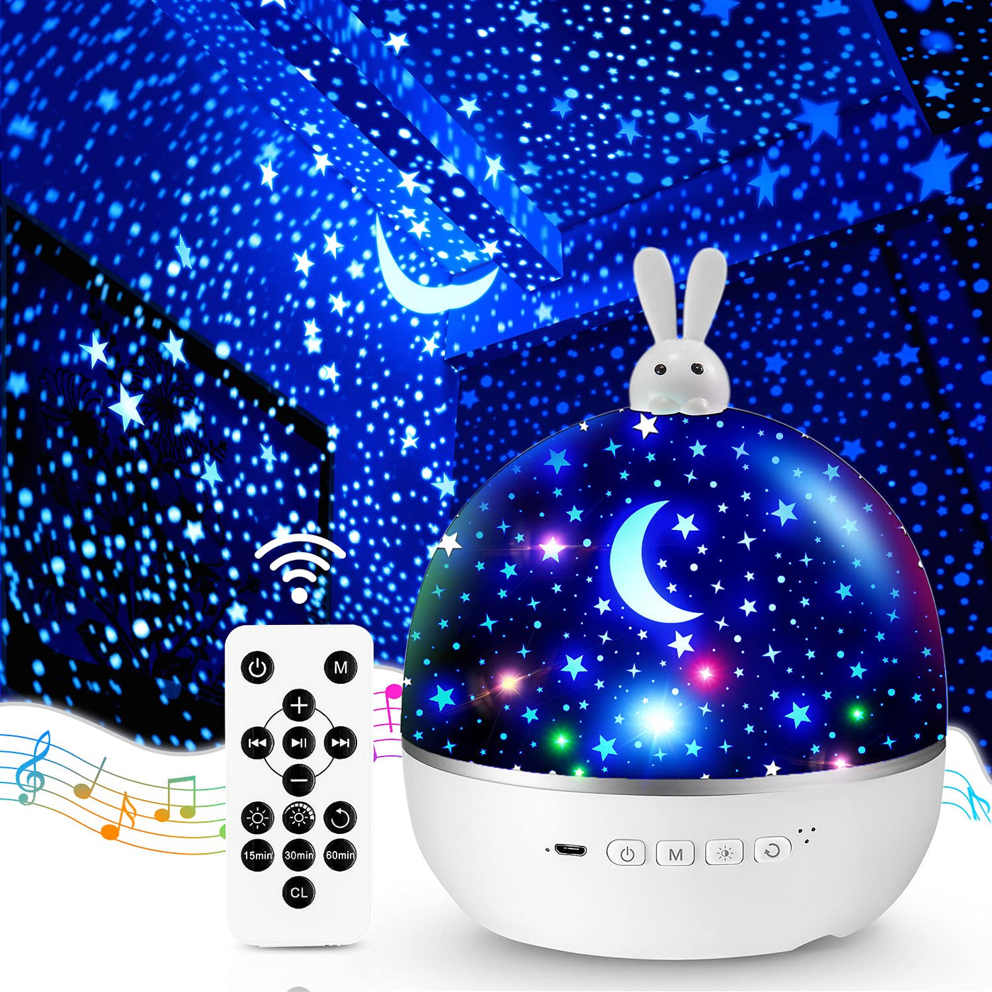 Transform your child's bedroom into a magical wonderland with the One Fire Bunny Night Light Projector. This multifunctional device not only illuminates the room with a dazzling display of stars and vibrant colors but also soothes your little ones to sleep with calming music. Perfect for creating a serene bedtime atmosphere, this night light projector is an ideal gift for kids on special occasions like birthdays and Christmas.