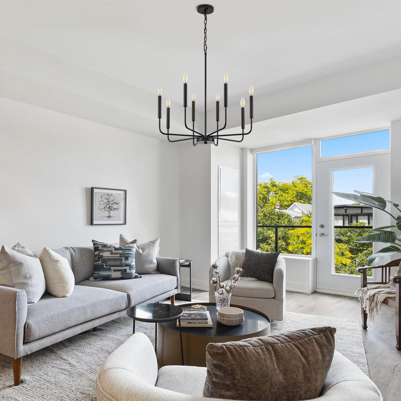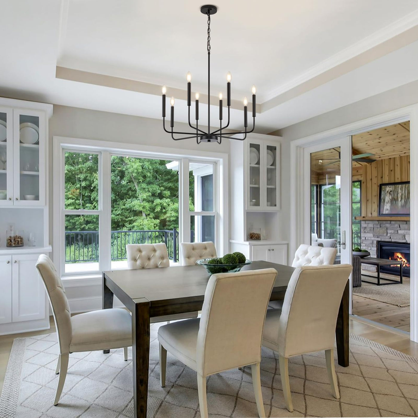 Onesming Modern Black Chandelier For Dining Room,Metal 8-Light Kitchen Light Fixtures, Farmhouse Candle Hanging Pendant Light For Living Room Entryway Foyer Bedroom (Bulbs Not Included)