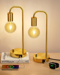 Onewish Industrial Table Lamp Set Of 2 With Usb A&C Charging Port, Stepless Dimmable Nightstand Bedside Lamps For Bedroom,Desk L