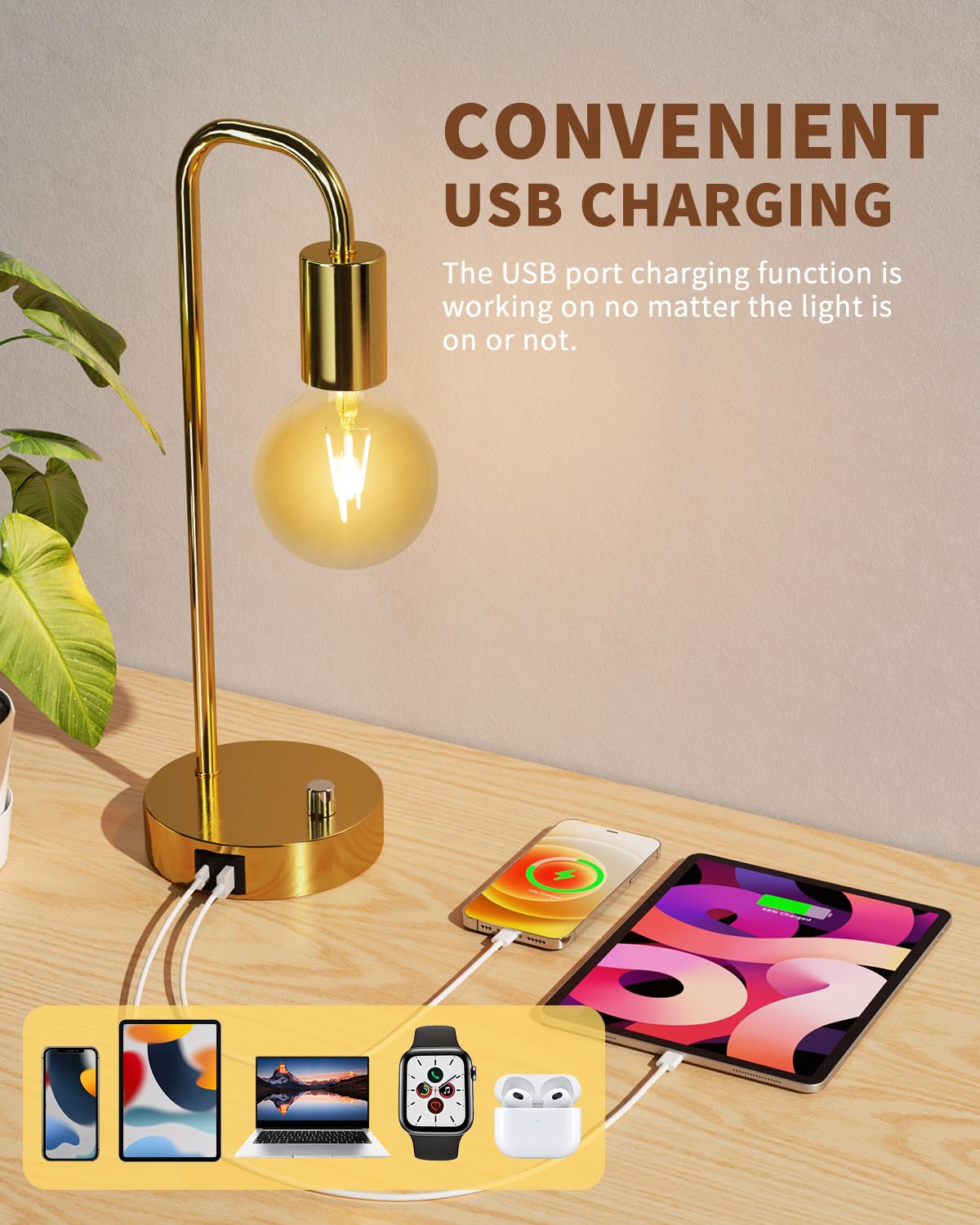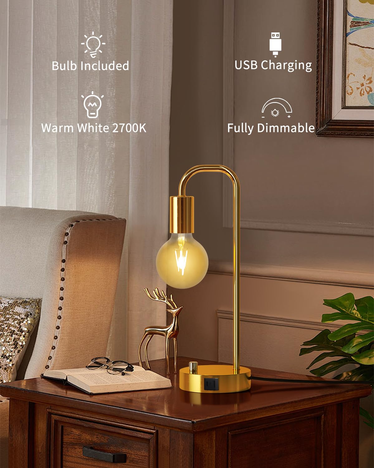 Feature: 1 Pack Table Lamps For Nightstand: Turning The Dimmer Knob To Control This Gold Table Lamp. Lamps For Bedrooms With Full Brightness: This Small Table Lamp Can Easily Adjust The Brightness From 0% To 100%. Onewish Table Lamp Come With 1 Usb Port & 1 Type-A Port Quality Assurance Of The Metal Table Lamp: The Light Pole And Lamp Base Are Made Of 100% Metal. The Surface Is Coated With Anti-Rust Paint. It Won'T Rust Or Get Longer With The Passage Of Time. Stand Stably Bedside Lamp: This Glass Table Lamp Has A Heavy Duty Metal Base To Avoid Wobbling And Slipping Around. Specification: Material: Glass, Metal Input Voltage: 120Vac Maximum Bulb Wattage: 60W Equivalent Lamp Base: E26 Power Cord Length: 4.92Ft Compatible Bulb Type: Dimmable Bulb Led Or Package: Mental Base 1 ; Led Bulb Dimmable 1 ; 4.92Ft Long Cord 1