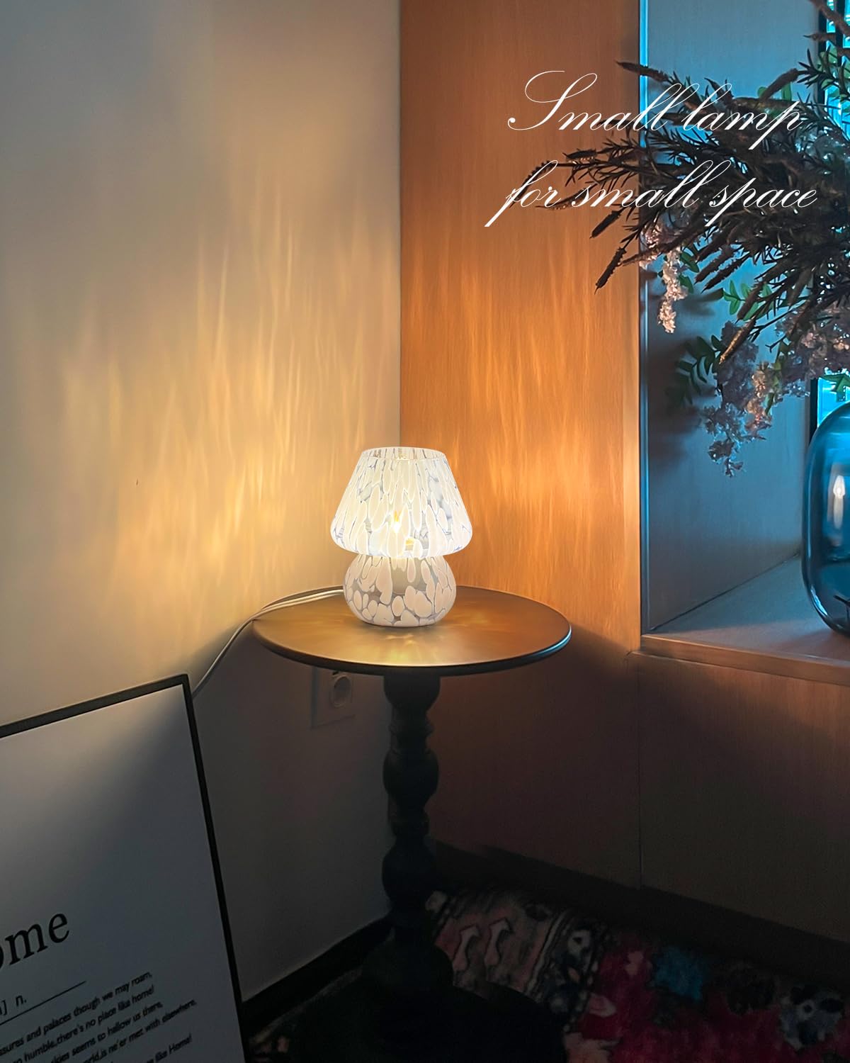 Onewish Mushroom Lamp Small Bedside Table Lamp-Nightstand Nightlight Dimmable Stepless, Translucent Glass Desk Lamp For Bedroom