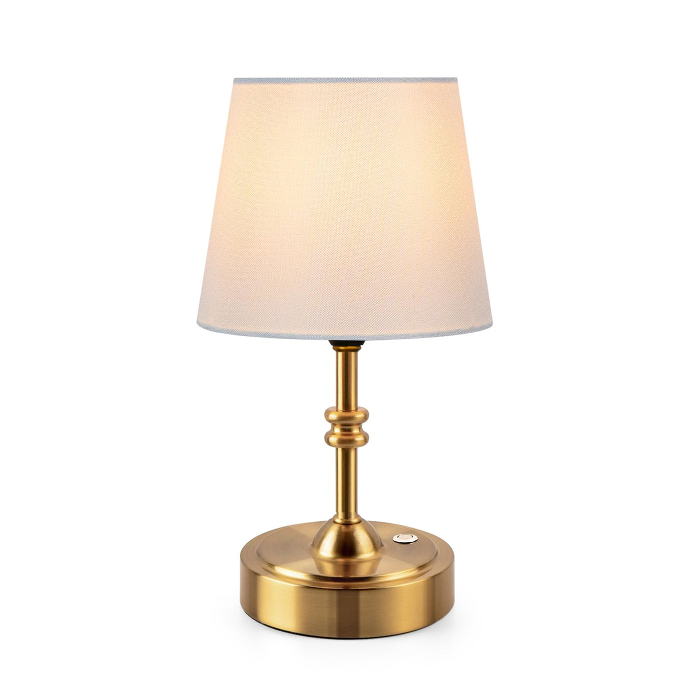 ONEWISH Portables Cordless Table Lamp, Fabric Shade Desk Lamp, 4000mAh Rechargeable Battery Powered Lighting, Dimmable light for Dining Room, Bedroom, Bedside, Bar, Night Light, Camping, Balcony, Patio(Bronze) This lamp is perfect: well-balanced, good weight, classic/traditional style, with a nice brushed chrome finish. The lamp has brightness adjustable. You can use it for a nightlight in the kitchen. The USB-C port is easy for recharging. The battery life is very good. When it starts to get dim, you can charge it during the day so it's ready to use at dusk. The E12 LED bulb( reamovable&replaceable) that comes with the lamp. This would make a charming hostess gift. Possible uses: on a kitchen island, on an entry table, on a bathroom vanity, on a side table, a pair on a dining room table would be a great option instead of candles. The customers can change the lamp bulb easily(Onewish also sell the original bulb compatible with this cordless lamp on our amazon store) We use the Hight Quality battery, it has excellent perfermance and good battery life. Not get Hot or being flicker when used for extended periods. The lamp shade is very nice quality and can be removable and washable. A nice woven type fabric linen that is white, but when the light is on it appears as a warm off white