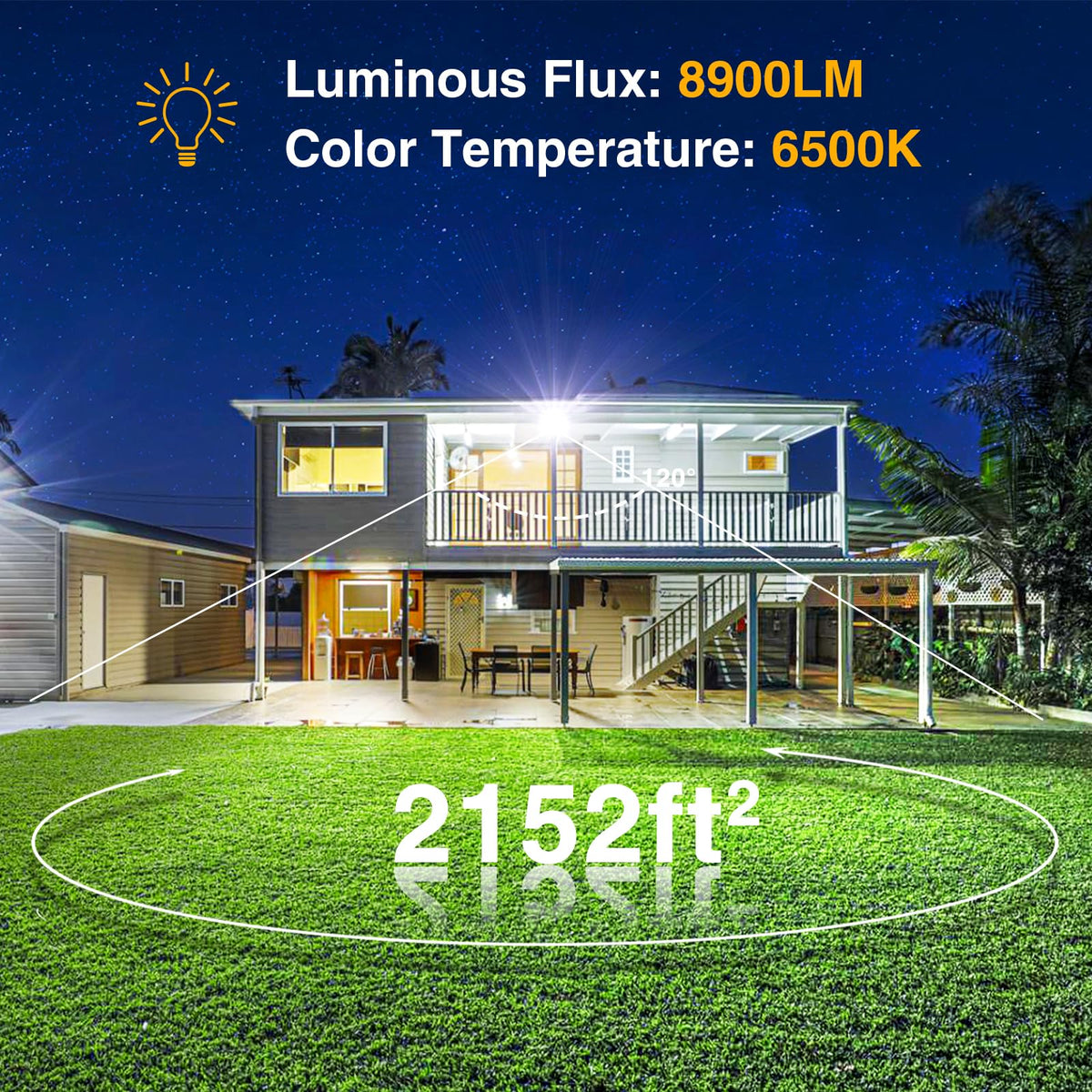 - **High Luminosity Performance**: Equipped with 112 advanced LEDs, these floodlights produce up to 9000 lumens of daylight white light, ensuring your outdoor areas are well-lit and safe during the night while saving 80%-90% on electricity costs compared to traditional lighting.