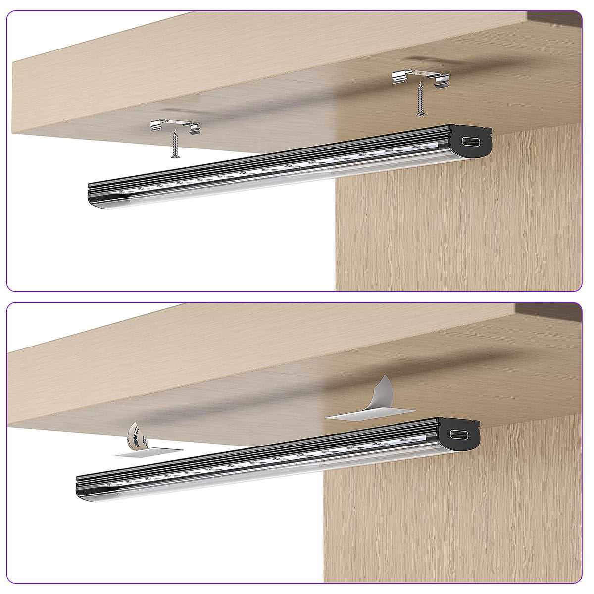 Q: How can I install the black light bar?A: The Onforu Black Light Bar offers various installation methods, including wall L-type mounting, under-counter clipping, and wall screw mounting, allowing you to choose the best option for your space.