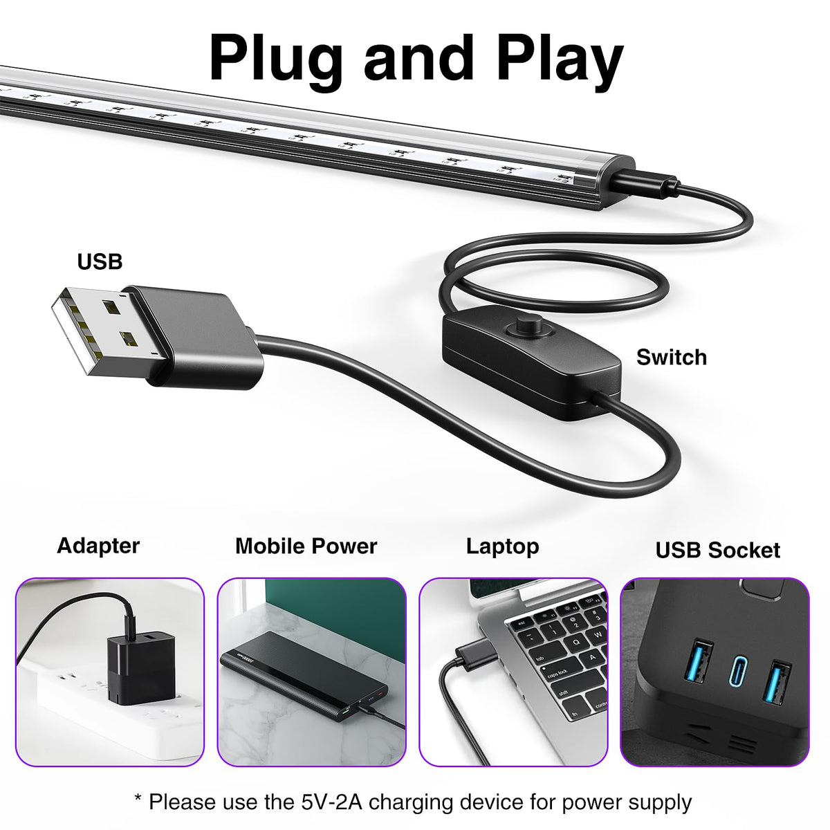 Onforu 2 Pack 10W Led Black Light Bar, 1Ft, Usb Blacklight Tube, Blacklight Bars With Switch, Black Light For Fluorescent Tapest