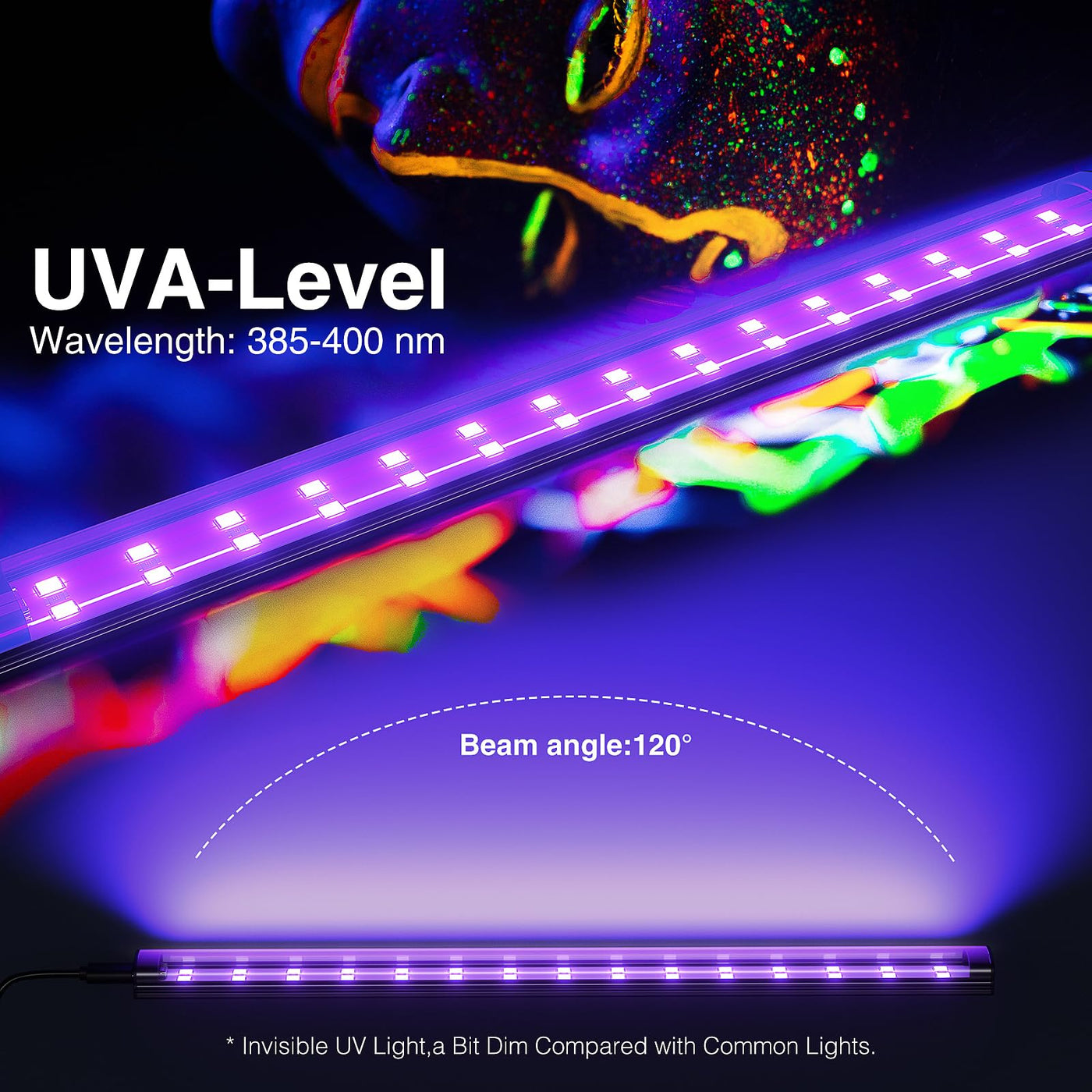 Each 10W Halloween Black Light Bar Is 1Ft With 30 Units High Quality Leds. It Provides 120 Degree Wide Beam Angles, 30,000 Hours Long Life And High Power Efficiency;