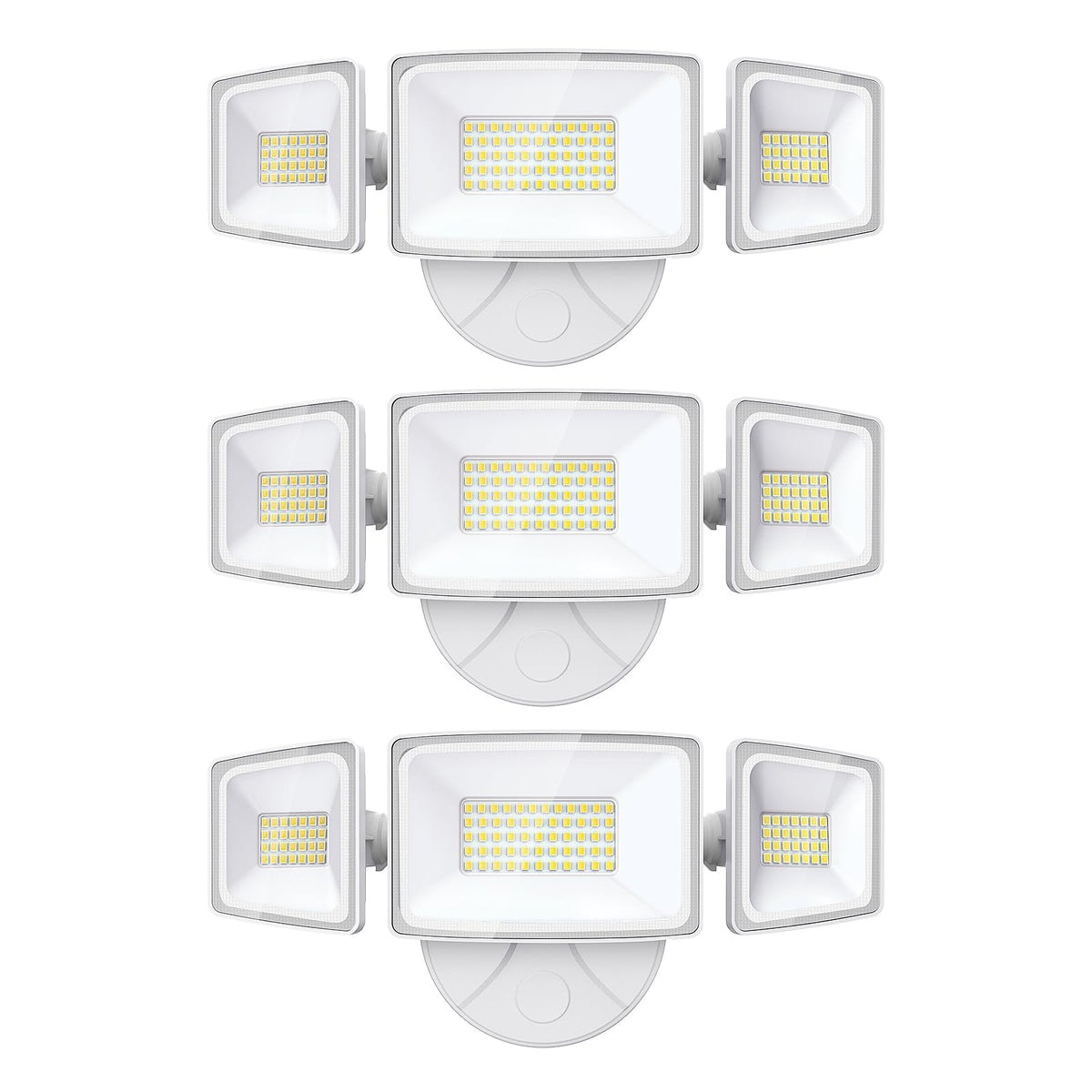 Onforu 3 Packs 60W Led Security Light, 6000Lm Waterproof Outdoor Flood Light, Adjustable Heads, White