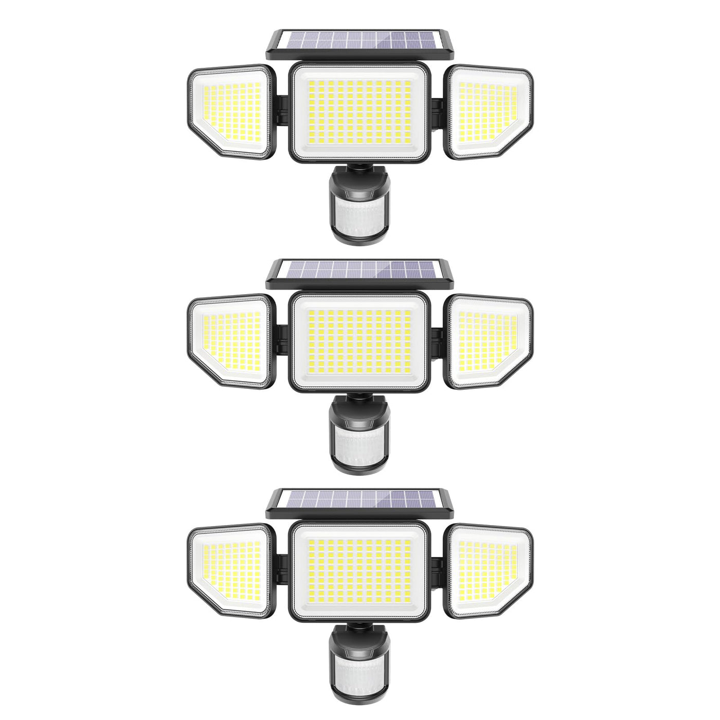 Onforu 3000Lm Solar Lights Outdoor, 258 Led 3 Heads Security Lights With Remote Control, Ip65 Waterproof Motion Sensor Lights, 3