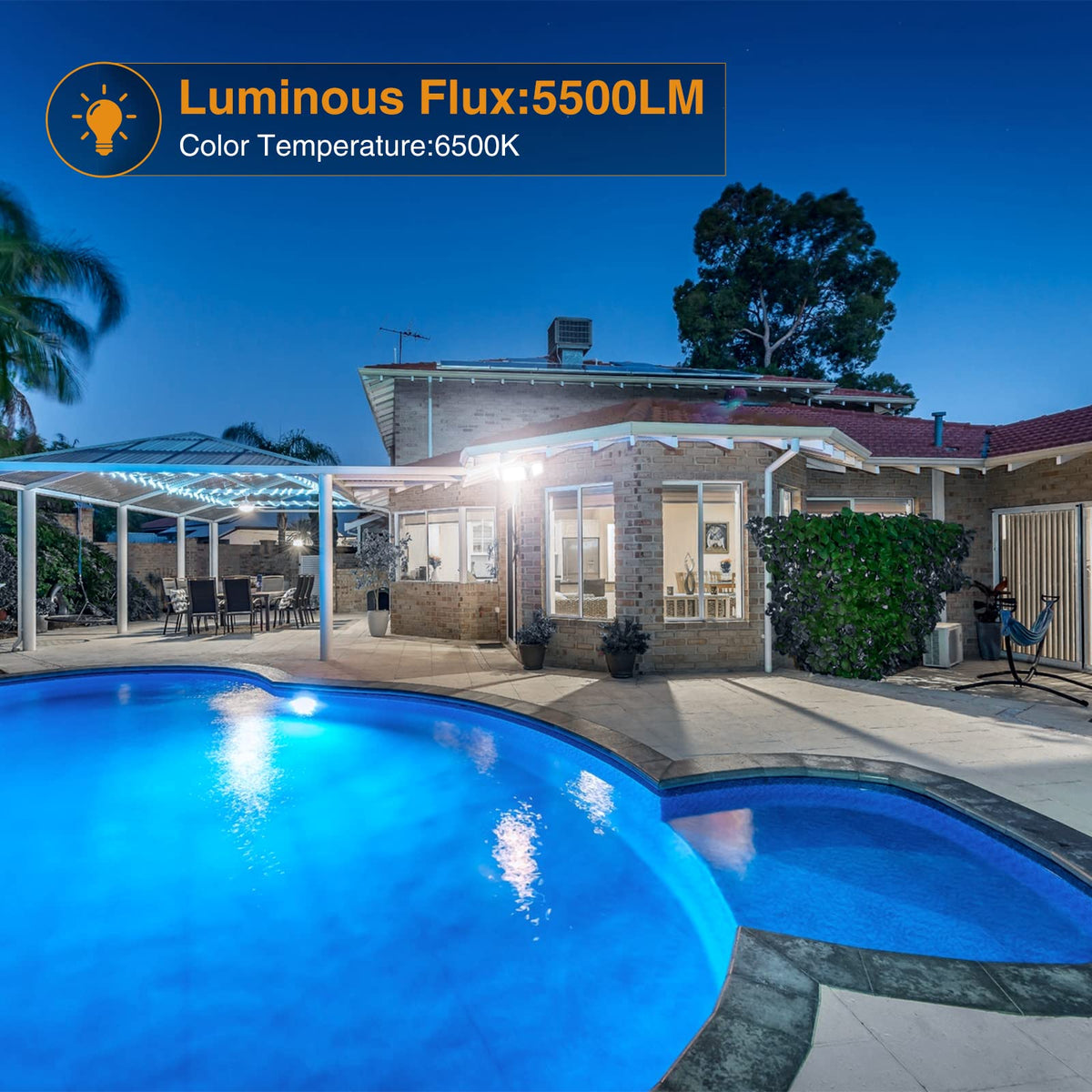 Onforu 55W Led Security Light, 5500Lm Outdoor Flood Lights Fixture With 3 Adjustable Heads, Ip65 Waterproof, 6500K White Super B