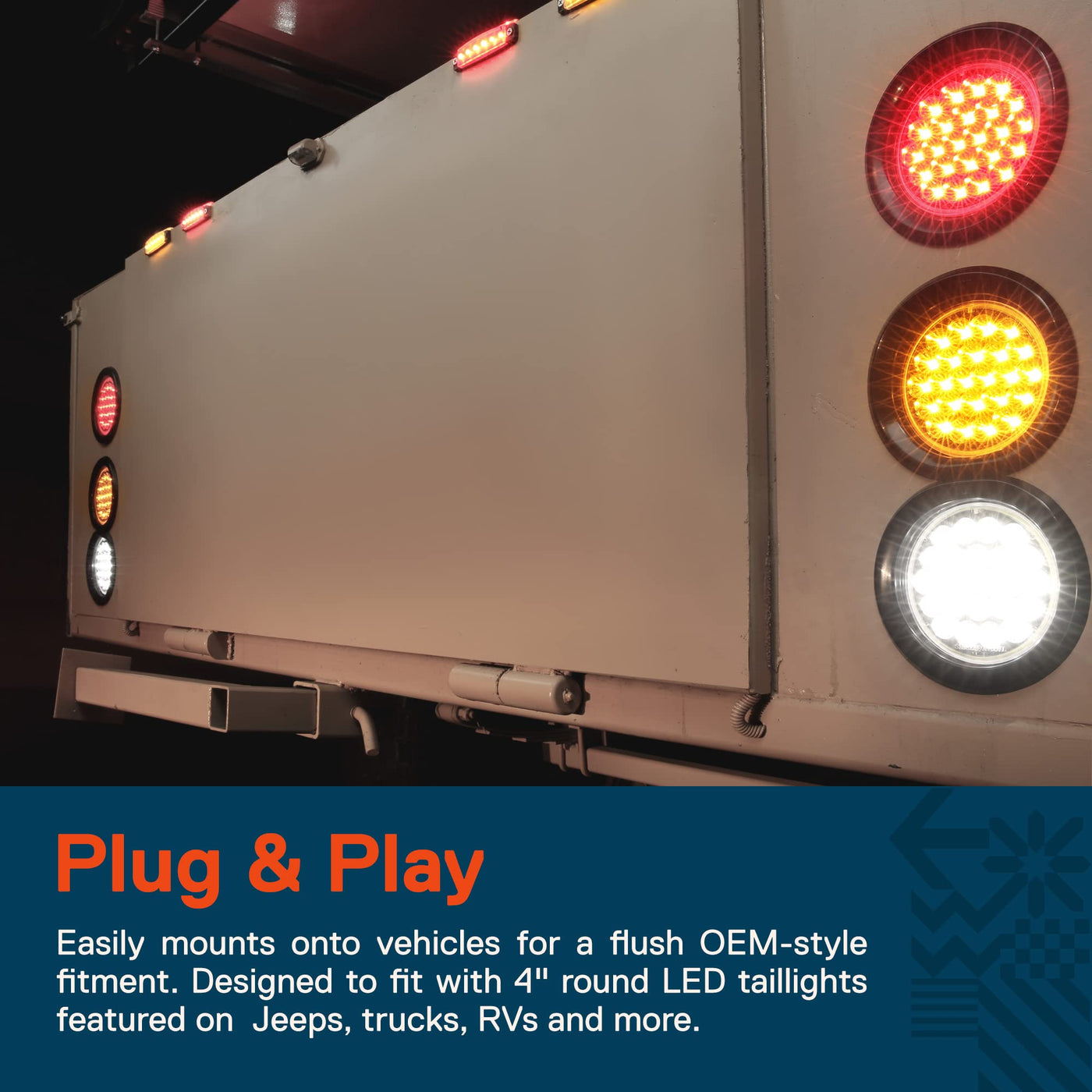 Q: How do I install the 4" round LED taillight grommet?A: Installation is simple and user-friendly; the grommet features a plug-and-play design that allows for easy mounting onto your vehicle without the need for special tools.
