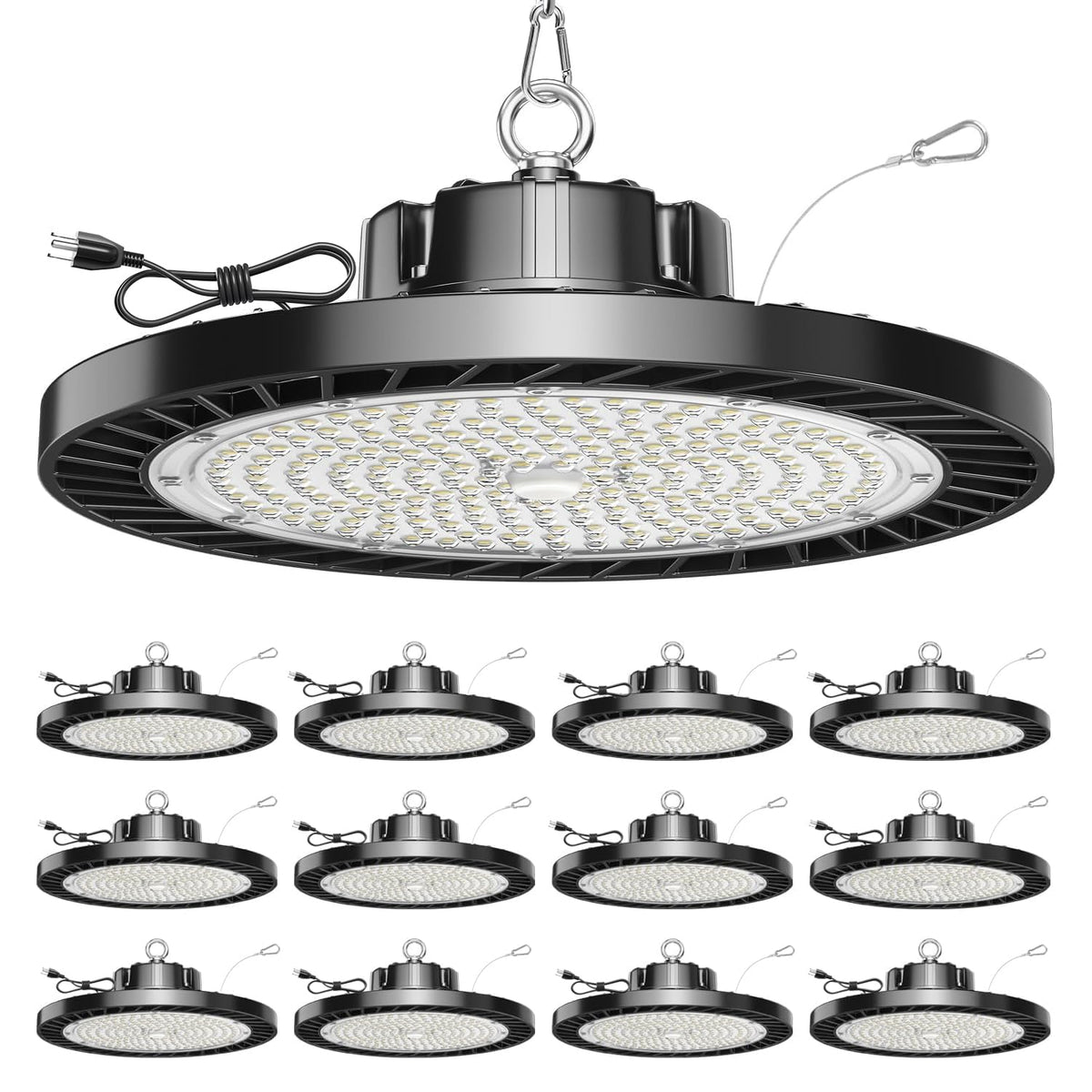 Light up large commercial spaces efficiently with the Onlylux 12-Pack UFO LED High Bay Light. This set of 12 LED high bay lights offers 22,500 lumens of powerful, energy-efficient illumination. Designed for use in high-ceiling areas like warehouses, factories, and workshops, these lights are the ideal choice for jobsite lighting that combines high performance with low energy consumption.