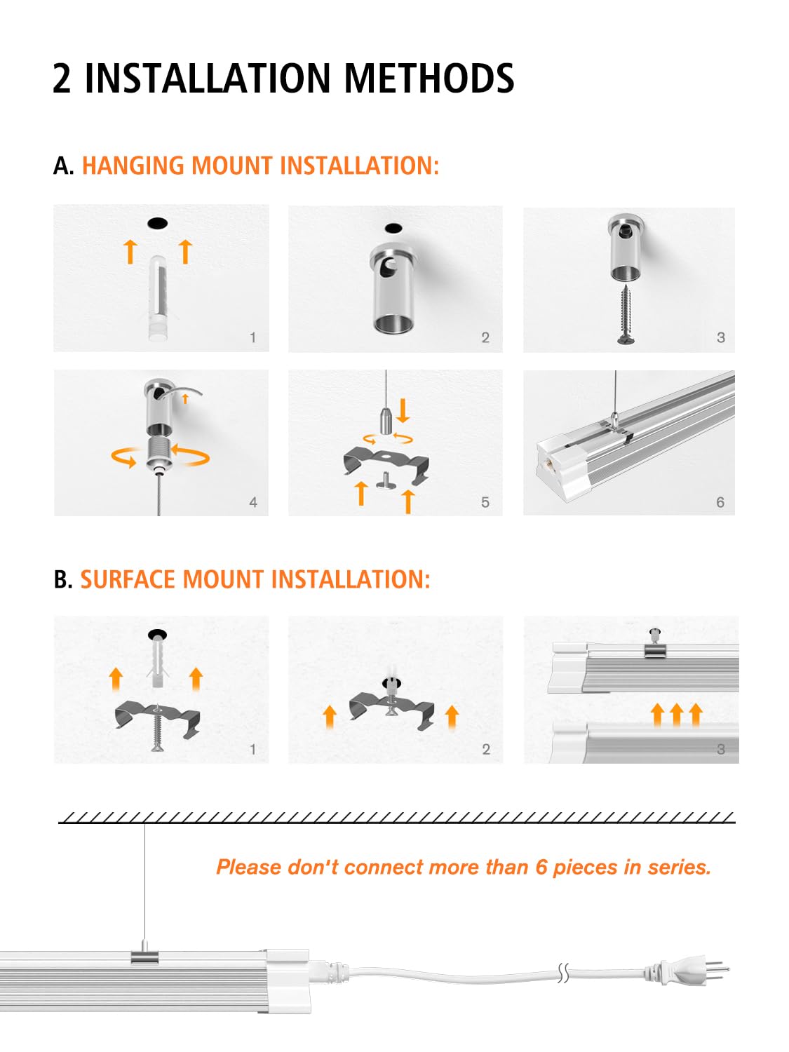 Q: Can I connect multiple ONLYLUX LED Shop Lights together?A: Yes, the ONLYLUX LED Shop Light is designed to be linkable. However, it is recommended not to connect more than 6 units in series to ensure optimal performance.