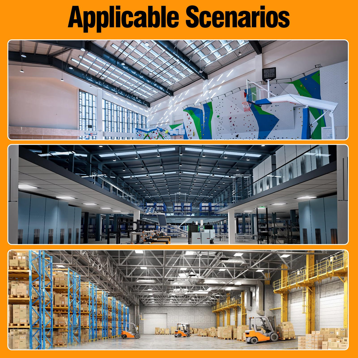 Q: What type of environments can the ONLYLUX High Bay Lights be used in?A: These high bay lights are designed for a wide range of applications, including garages, workshops, gymnasiums, factories, exhibition halls, shopping malls, and storage yards, making them versatile for any large commercial or industrial space.