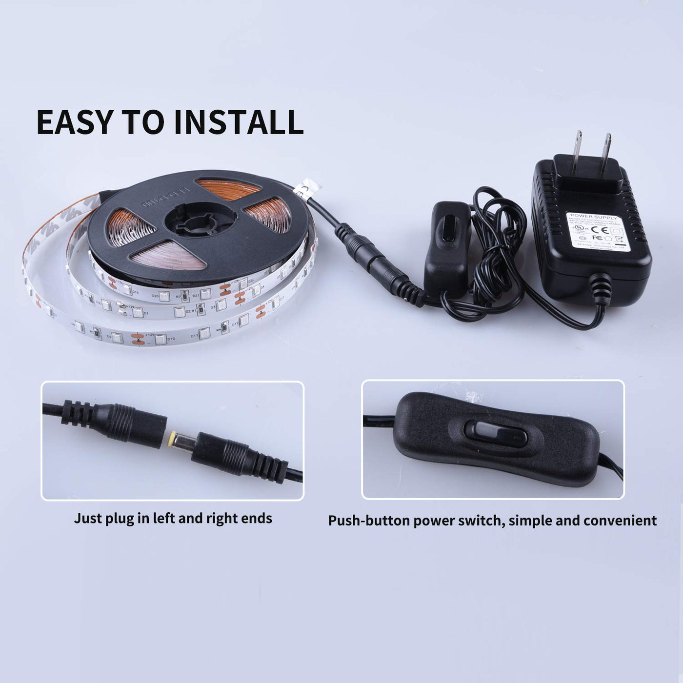 Easy Installation: Plug and play LED strip light with self-adhesive tape for secure mounting.