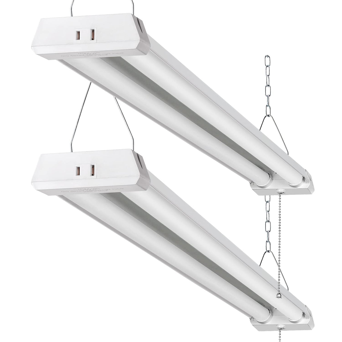 Oooled 4Ft Linkable Led Shop Light For Garages, 42W 4800Lm 5000K Daylight Led Shop Lights, Led Ceiling Light With Pull Chain (On/Off), Linear Worklight Fixture With Plug, 2 Pack