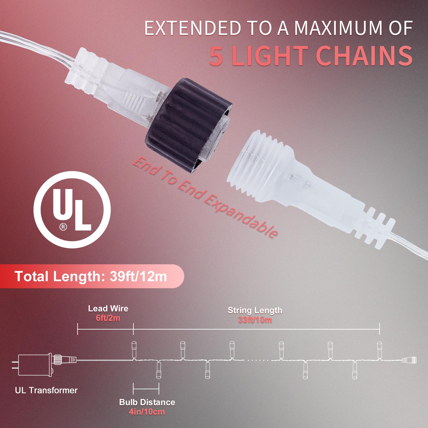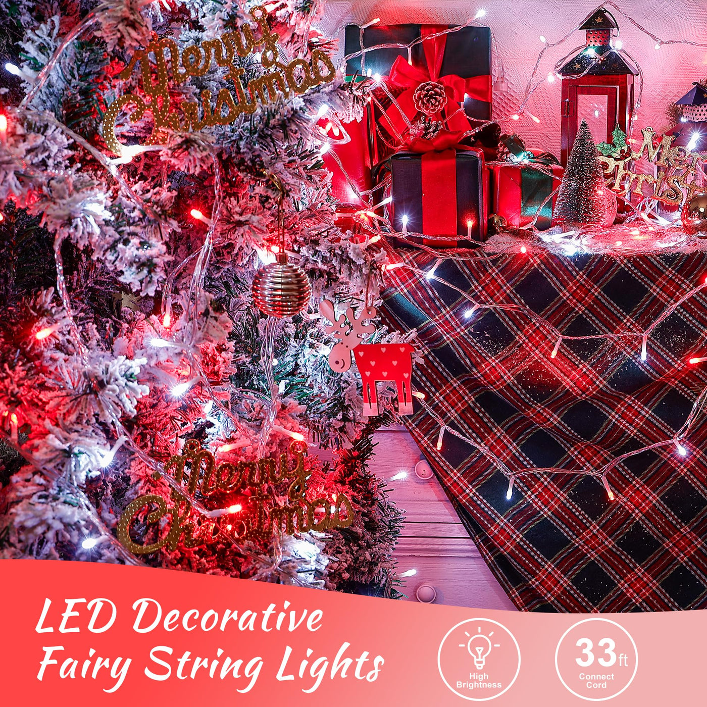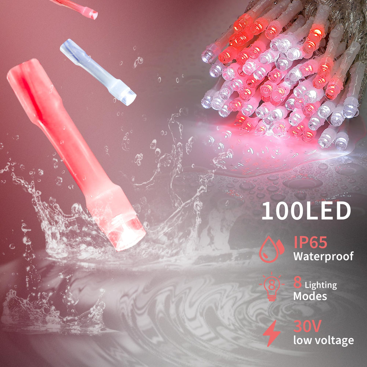 Oopswow 33Ft 100 Led String Lights,Waterproof Twinkle Fairy Lights Plug In With 8 Modes, Christmas Lights Clear Wire For Wedding, Valentine,Party,Tree,Christmas Decoration Indoor Outdoor-Red&White