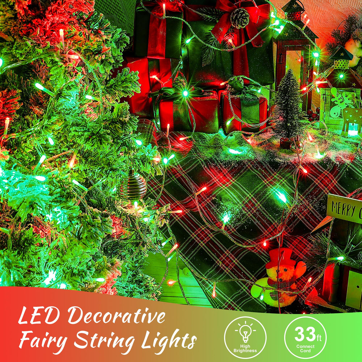 Oopswow Red And Green String Lights, 33Ft 100 Led Christmas Lights Plug In,8 Modes Twinkle Fairy Lights Waterproof For Indoor Outdoor, Christmas Tree Lights For Holiday,Wedding Party,Xmas Decor
