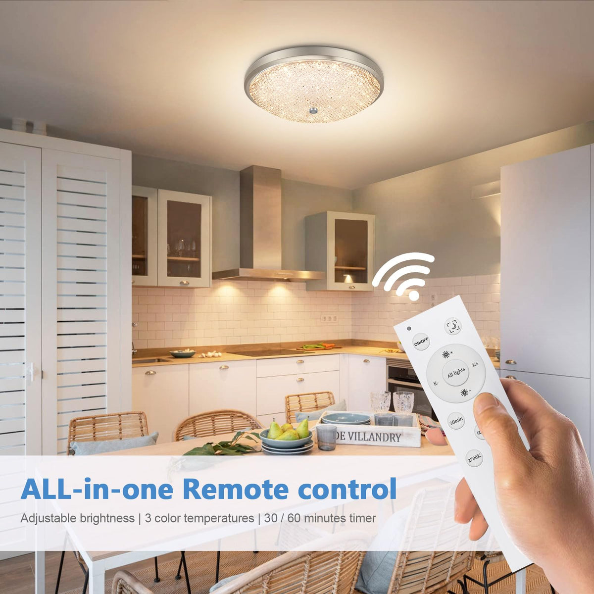The Crystal Flush Mount Ceiling Light Fixture is an elegant and modern lighting solution designed to enhance the ambiance of any space. Ideal for kitchens, hallways, and foyers, this LED round ceiling lamp combines functionality with aesthetic appeal.