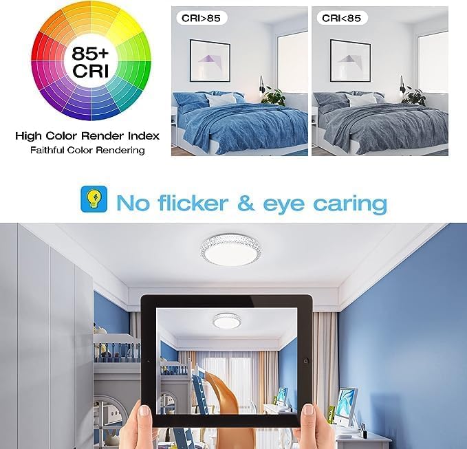 ?? Eye Protection: Provides uniform lighting without flickering, protecting your eyes from harsh glare.