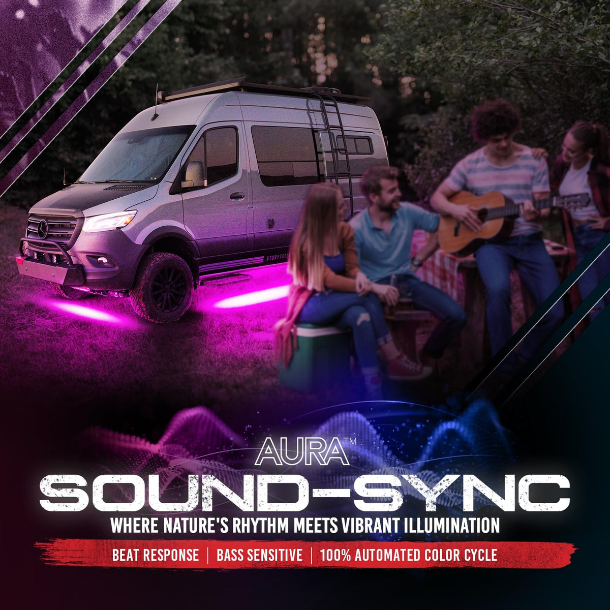 OPT7 Aura LED Underglow Lights for RV Camper Van, 12V Waterproof, RGB Multicolor, Model AURA-UNDERBODY-RGB-CLASSB-12PC-G3-M