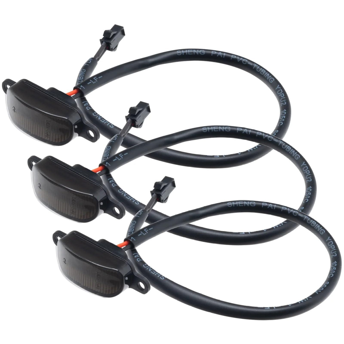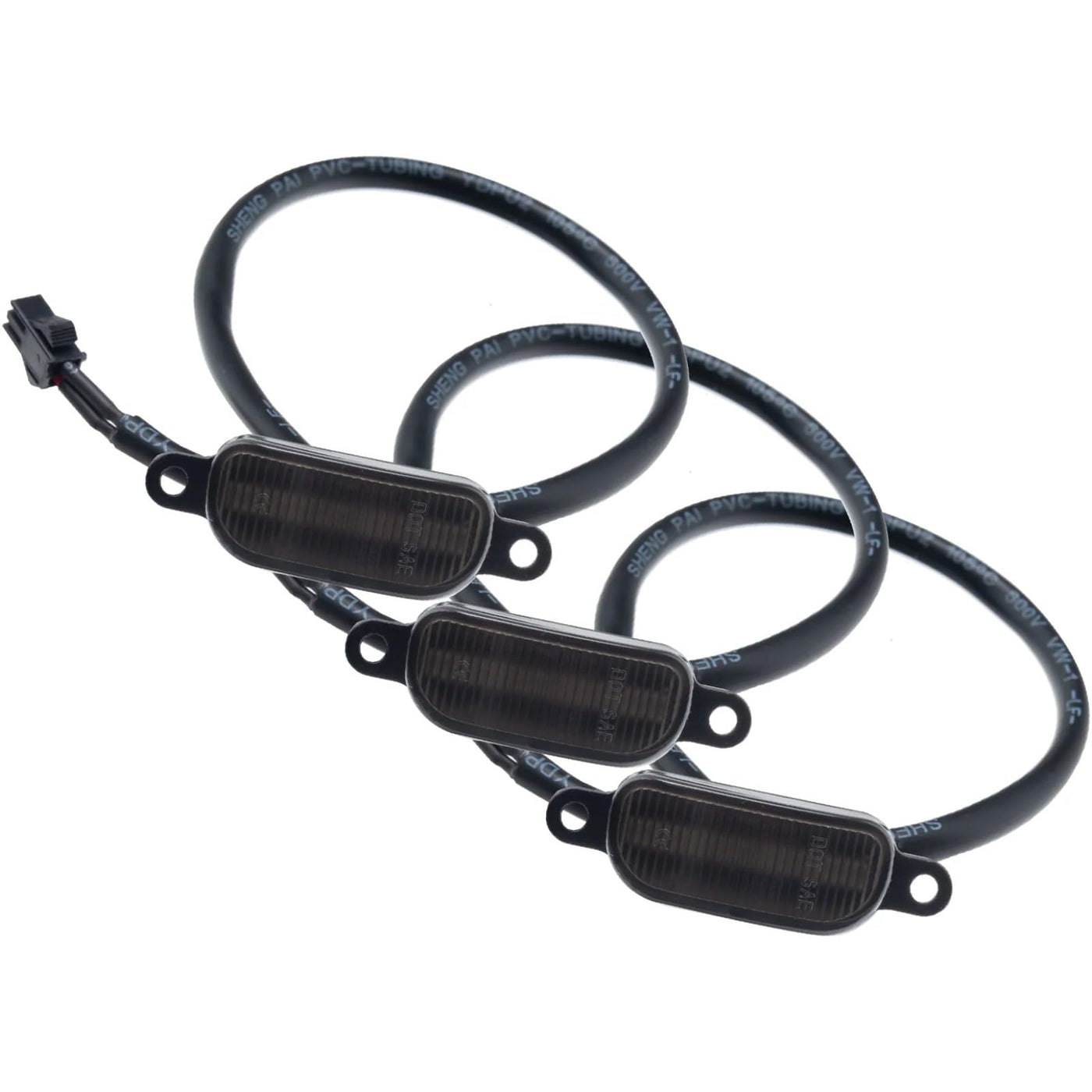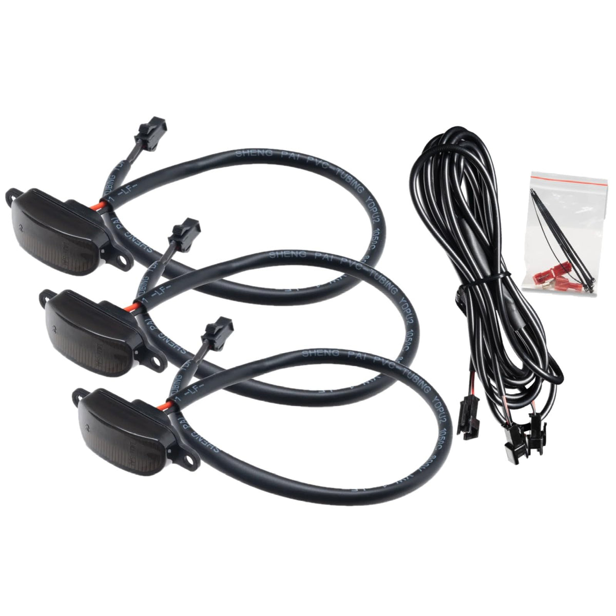 Diffused Lens: This auxiliary grill light design features a new housing with a diffused lens to provide a more factory appearance | Ultra-Modern Appearance: 15x amber LEDs are arranged in a horizontal, linear fashion for an ultra-modern appearance | Vibrant Look: These bright pre-runner lights give the front end of your vehicle a vibrant look that makes a bold statement on any terrain | No Modifications: This new style kit adds 3x LED pre-runner lights to the front grill of your vehicle without any modification, cutting or drilling | Reduced Installation Time: The universal kit installs into the opening holes of the grill on most vehicles; The included wiring harness reduces installation time and features offset cable lengths to make cable management easier
