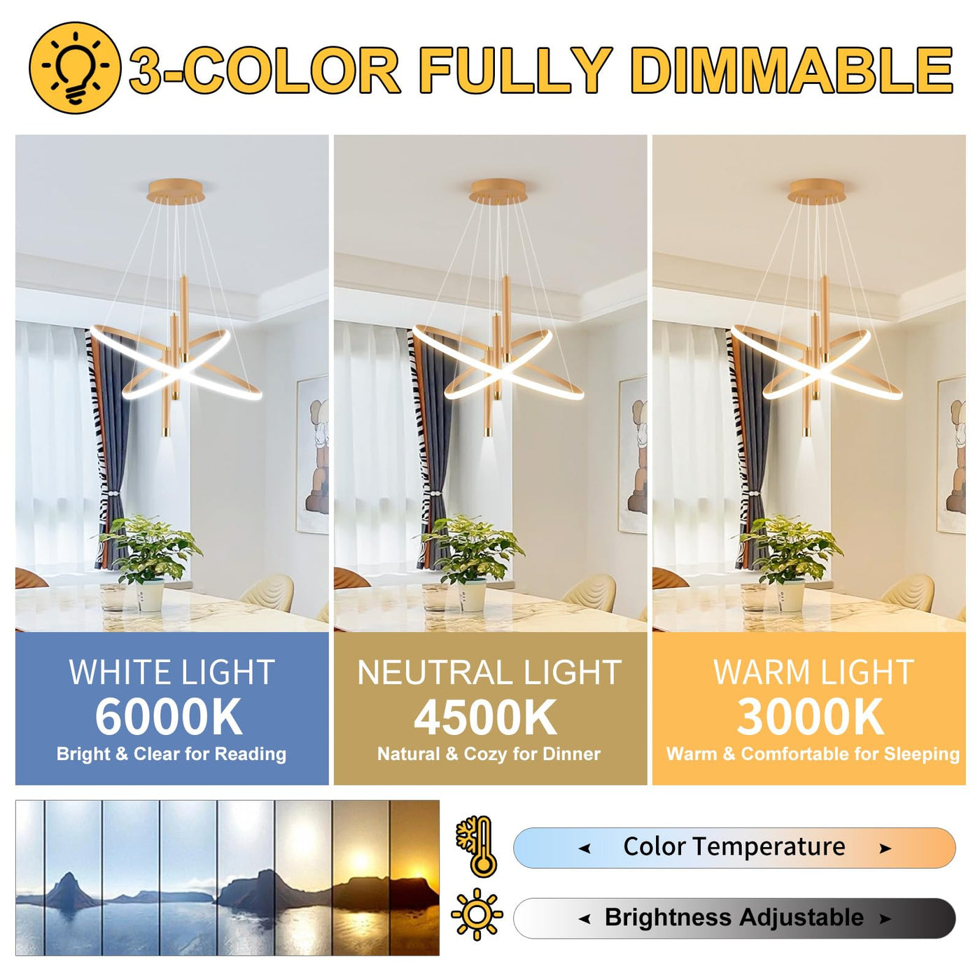 Oranoor Led Gold Modern Chandeliers For Dining Room Bedrooms Living Room, Dimmable 24In 5250Lm Kitchen Pendant Lamp Dining Room