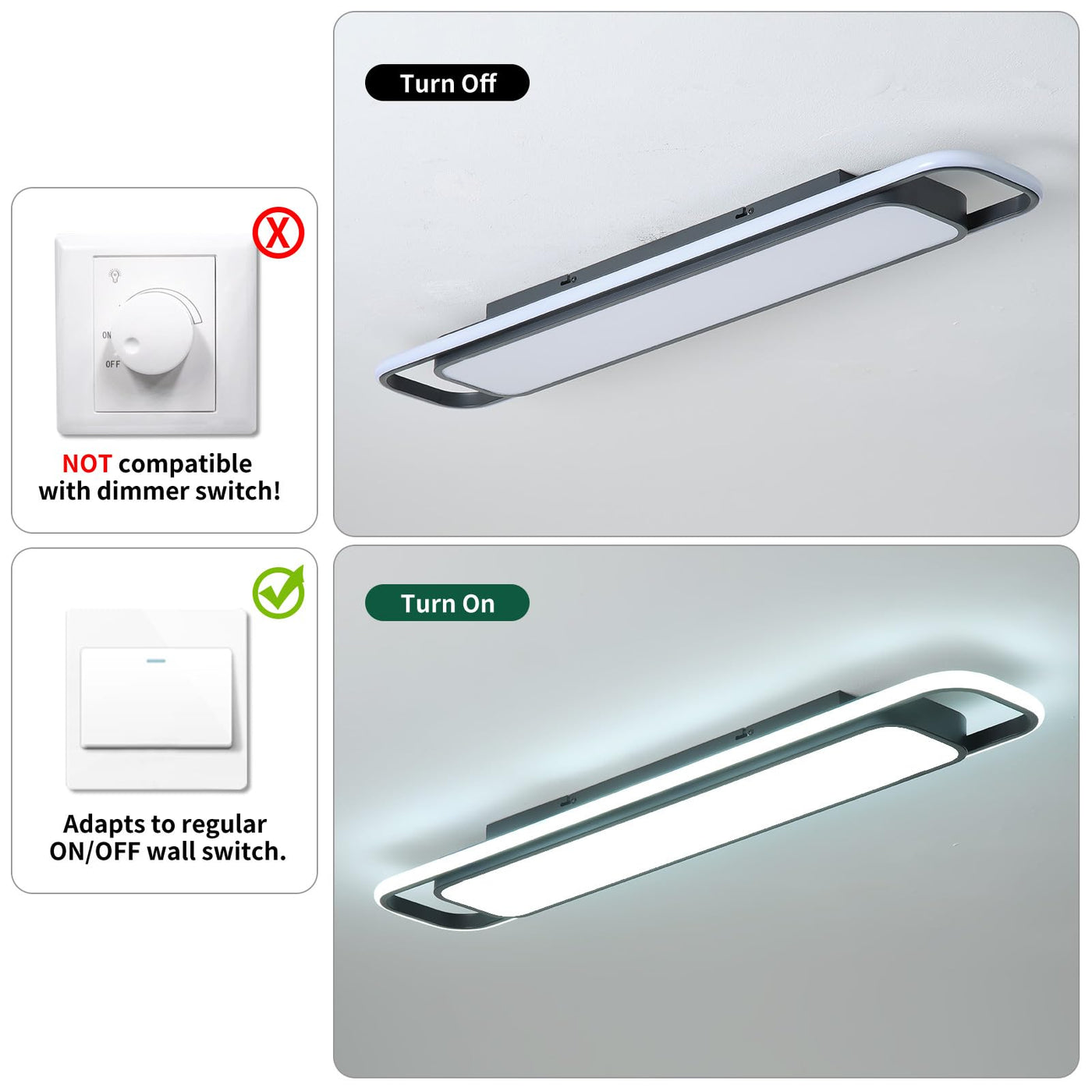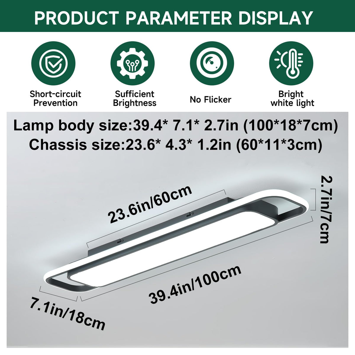 Modern Led Ceiling Light Oranoor Modern Led Ceiling Lighting 70W 6000K Black Linear Flush Mount Light Fixture 39.4 Low Profile Lights Fixture Long Led Ceiling Lamp For Kitchen Bedroom Living Room Hallway (Cool White) Modern Led Ceiling Light Long Linear Ceiling Lamp Flush Mounted Led Ceiling Lighting Semi Surface Close To Ceiling Light Fixtures Flushmount Matte Black Rectangle Led Chandelier Bedroom Living Dining Room Laundry Entry Way Large Sloped Office Closet ??Not Dimmable + High Brightness?- The Led Modern Ceiling Light Emits 6000K Cool White Light And Can Provide Sufficient Illumination. Designed With Eye-Protection System No Blue Light Close To Natural Light.?Ps: Not Compatible With Wall Dimmer Switch. Please Use A Regular On/Off Wall Switch!? ??Upgraded Led Chip + Stable Performance?-With Upgraded Led Light Source The Black Flush Mount Light Fixture Is More Efficient And Energy-Saving Stable And No Flicker. This Led Light Fixtures Ceiling Mount Has Cri 80+ To Capture All Natural Colors Of The Objects To Get A More Comfortable Visual Experience. ??Suitable Size + Widely Used?-Close To Ceiling Light Fixture Length=39.37In/100Cm. Width=7.09In/18Cm. Fixture Height: 2.76In/7Cm. With Its Modern Design And Versatility This Long Modern Led Ceiling Lamp Is Suitable For All Interior Design Styles Can Be Used In Bedroom Living Room Kitchen Dining Room Hallway Entry Way Office Laundry Room Porch Closet Cloakroom Corridor Restaurant Aisle Etc.?It Can Also Be Installed On Sloped Ceiling.? ??well-made Materials + Long Service Life?-The Linear Led Ceiling Lighting Is Made Of Metals And Acrylic Light Transmission Over 95%. Flush Mount Led Chandeliers Ceiling Light Do Not Rusts Faded Prevention Anti-Scratch. ??Cost-Effective + Easy To Install?- The Hallway Light Fixture Ceiling. If You Have Any Questions About The Kitchen Lighting Fixtures Ceiling