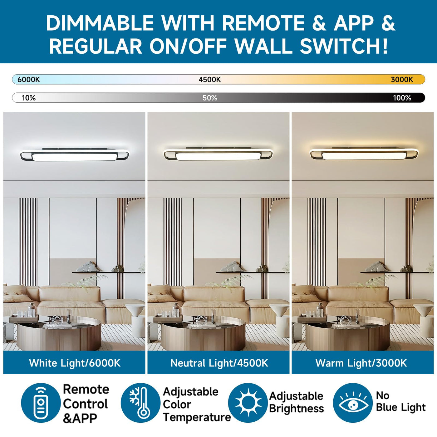 Modern Led Ceiling Light Oranoor Modern Led Ceiling Lighting With Remote 70W Dimmable Black Linear Flush Mount Light Fixture 39.4 Low Profile Lights Fixture Long Led Ceiling Lamp For Kitchen Bedroom Living Room Hallway Modern Led Ceiling Light Long Linear Ceiling Lamp Flush Mounted Led Ceiling Lighting Semi Surface Close To Ceiling Light Fixtures Flushmount Matte Black Rectangle Led Chandelier Bedroom Living Dining Room Laundry Entry Way Large Sloped Office Closet ??Dimmable With Remote + Various Functions?-According To Your Preference You Can Adjust The Modern Led Ceiling Light Fixture Through The Remote. Memory Function & Nightlight Mode Can Also Be Achieved Via The Matched Remote. ??Upgraded Led Chip + Stable Performance?-With Upgraded Led Light Source The Black Flush Mount Light Fixture Is More Efficient And Energy-Saving Stable And No Flicker Soft Light Protects Your FamilyS Eyes. The Linear Led Ceiling Lighting Has Cri 80+ ??Suitable Size + Widely Used?-Close To Ceiling Light Fixture Length=39.37In/100Cm. Width=7.09In/18Cm. Fixture Height: 2.76In/7Cm. With Its Modern Design And Versatility This Long Modern Led Ceiling Lamp Is Suitable For All Interior Design Styles Can Be Used In Bedroom Living Room Kitchen Dining Room Hallway Entry Way Office Laundry Room Porch Closet Cloakroom Corridor Restaurant Aisle Etc.?It Can Also Be Installed On Sloped Ceiling.? ??well-made Materials + Long Service Life?-This Led Dimmable Ceiling Light With Remote Is Made Of Metals And Acrylic Light Transmission Over 95%. The Flush Mount Led Chandeliers Ceiling Light Do Not Rusts Faded Prevention Anti-Scratch. ??Cost-Effective + Easy To Install?-The Instructions In The Package Have Detailed Steps And Legends You Can Also Scan The Qr Code To Watch The Installation Video Of The Hallway Light Fixture Ceiling. If You Have Any Questions About The Kitchen Lighting Fixtures Ceiling