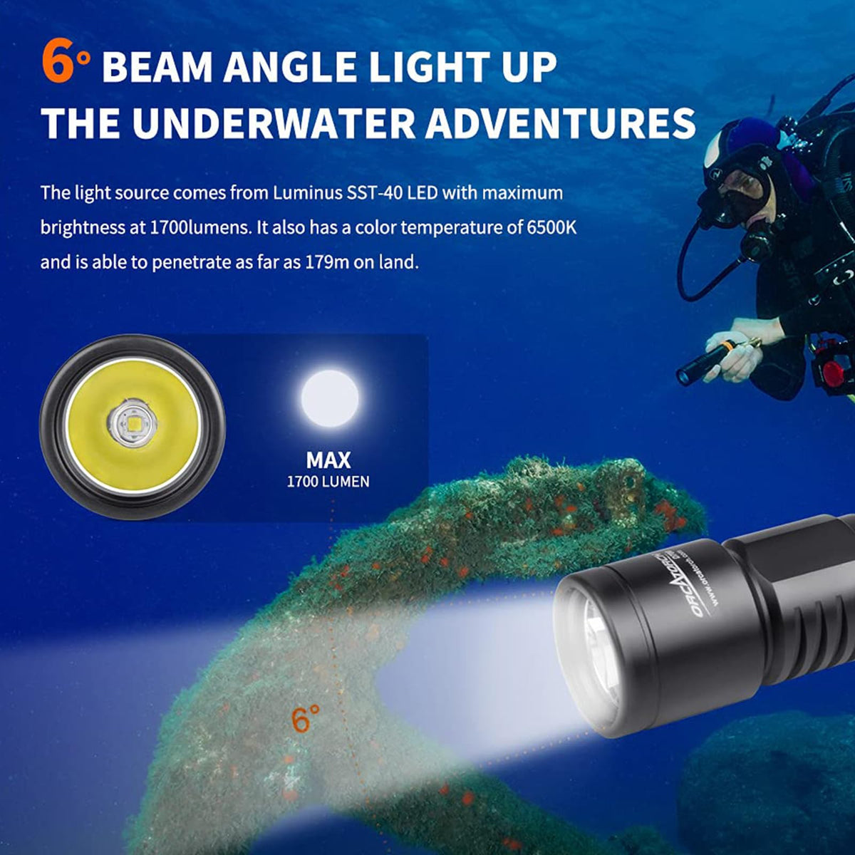Orcatorch D700 1700 Lumens Dive Light Torch Mechanical Head Twist On/Off Professional Underwater Submersible Flashlight, Ip68 Waterproof, For Scuba Divers Technical Wreck Deep Sea Diving
